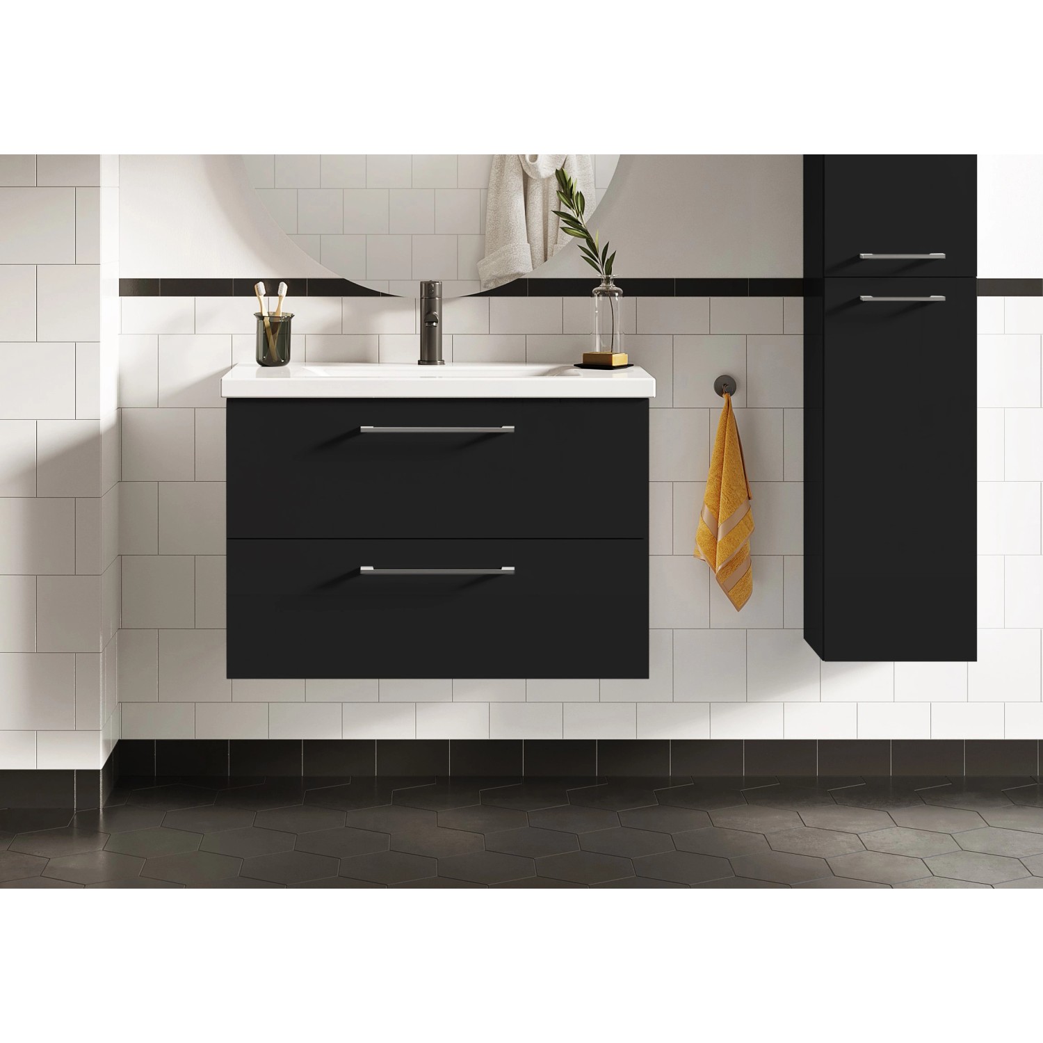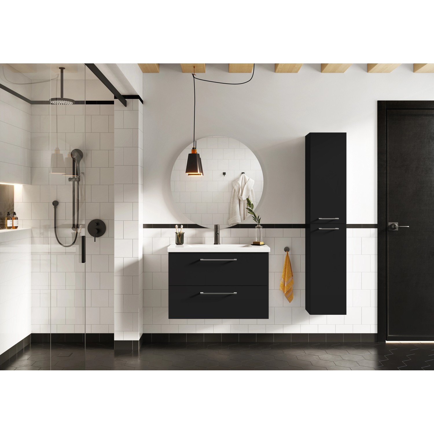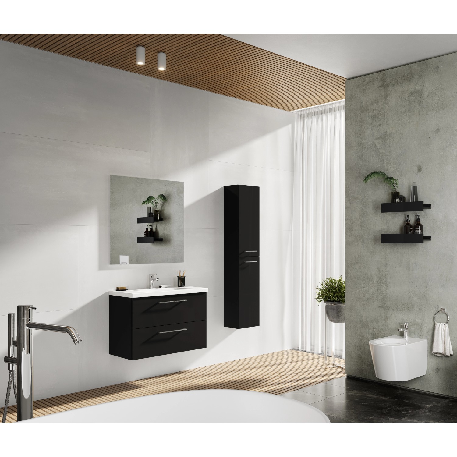 Skříňka nabídne skleněné odkládací police se spoustou úložného prostoru na vaše ručníky, koupelnové a kosmetické potřeby. Praktickým detailem je zavírání SoftClose, díky kterému se dvířka zavřou jemně a tiše. Skříňku zvládnete sestavit sami během chvilky.