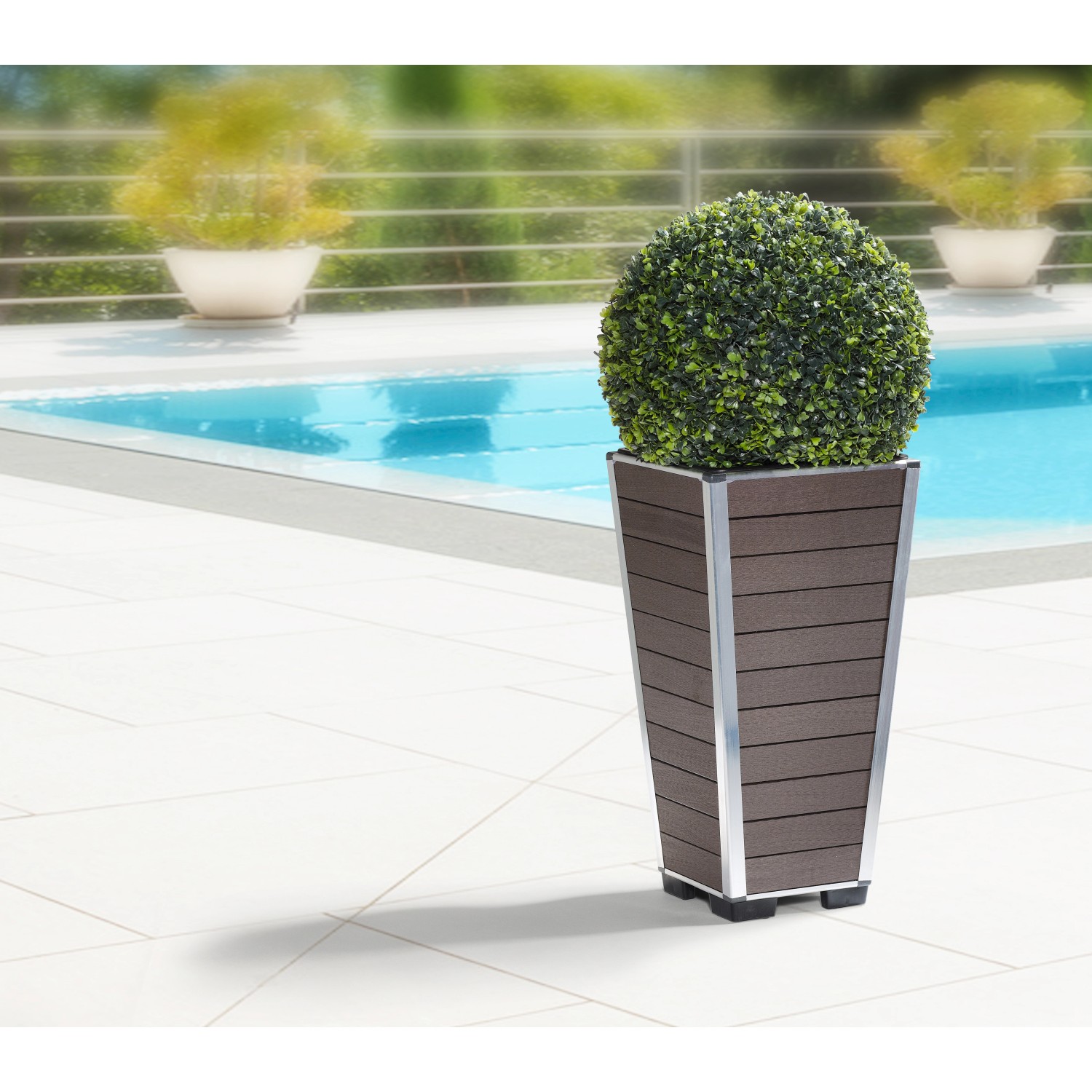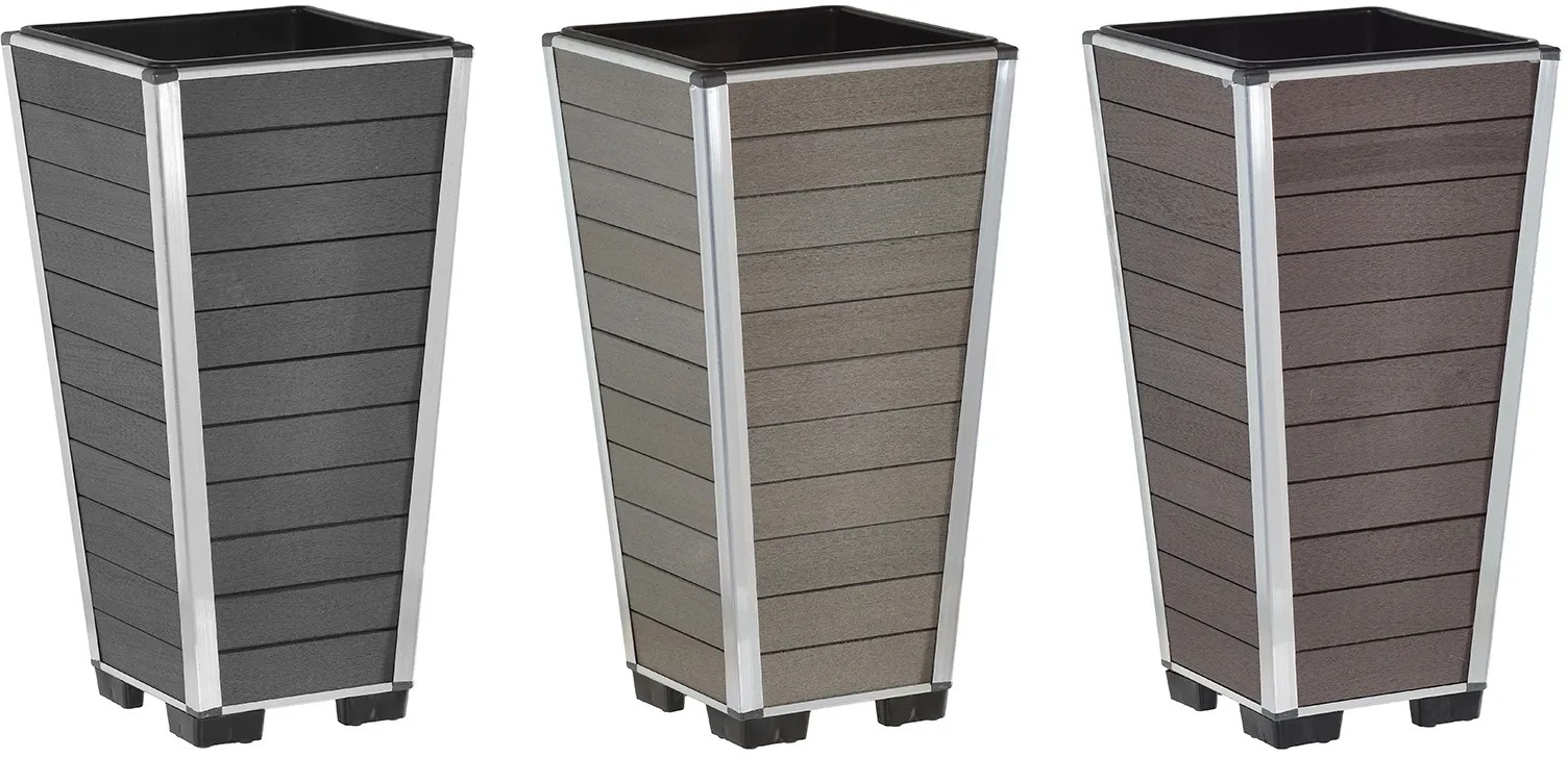 Květináč značky Gartenfreude zaujme jednoduchým, elegantním vzhledem. Je vyroben z kvalitního WPC a opatřen hliníkovou hranou. Materiál WPC (wood-plastic composite), známý také pod pojmem dřevoplast, kombinuje dřevěné piliny (v tomto případě bambusové) s termoplastickým polypropylenem. Bambus je rychle dorůstající surovina, která představuje udržitelné a ekologické pěstování. Květináč je vybaven plastovou vložkou, kterou lze pohodlně osázet mimo nádobu a poté vložit zpět do květináče.