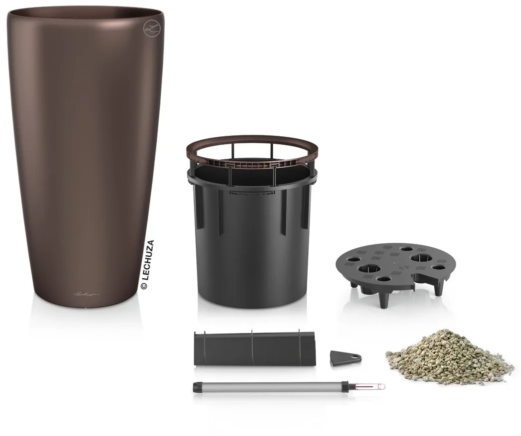 Lechuza Samozavlažovací květináč Rondo 32 espresso metalická pr. 32,5 x 56,5 cm