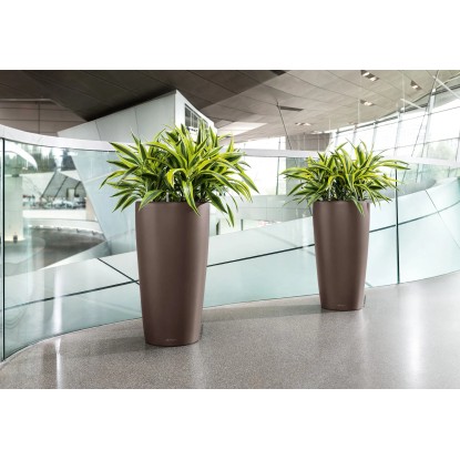 Stylové květináče Rondo zapadnou do klasické i moderní architektury. Tato řada květináčů je k dispozici s hedvábně matným povrchem, metalickým povrchem i lesklým povrchem, v několika velikostech a barvách. Květináče jsou nerozbitné, velice lehké, odolné vůči UV záření a jako všechny květináče Lechuza jsou vyrobeny ze 100% recyklovaných materiálů za pomocí zelené energie.