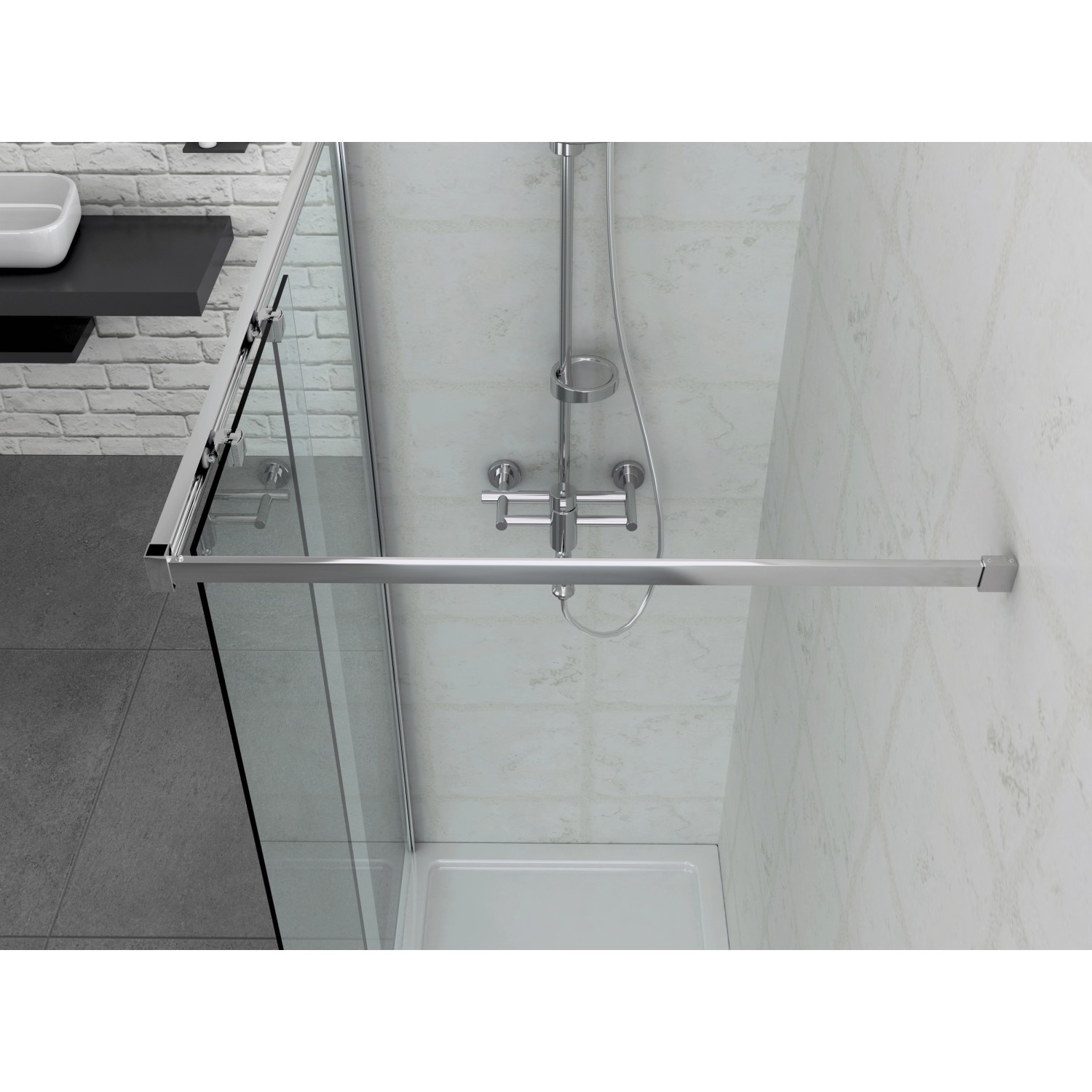 Při instalaci do rohu vytváří okolní stěny téměř ohraničený prostor na sprchování. Pochromované nástěnné profily lze nastavit v rozsahu 2 cm (120-122 cm), tím je při montáži zajištěna větší flexibilita a můžete tak jednoduše vyrovnat šikmé stěny. Zástěnu lze namontovat nalevo nebo napravo.