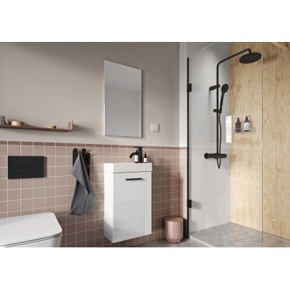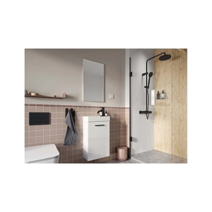 Sada koupelnového nábytku Palma zaujme svým pohodlným a moderním designem a lze ji integrovat do malých koupelen. 1dveřová spodní skříňka s praktickou funkcí Soft-Close nabízí úložný prostor pro vaše koupelnové doplňky. Celkový vzhled skříně završuje černá rukojeť. Keramické umyvadlo se velmi snadno čistí.
