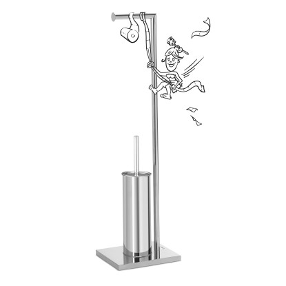 Vedle toalety je volně stojící souprava WC štětky vždy po ruce. Má výšku 80 cm, šířku 18 cm a hloubku 22 cm. Souprava je vyrobena z nerezové oceli, má kvalitní vzhled a snadno se hygienicky čistí. Výměnná hlavice štětky o průměru 7,5 cm (velikost M.