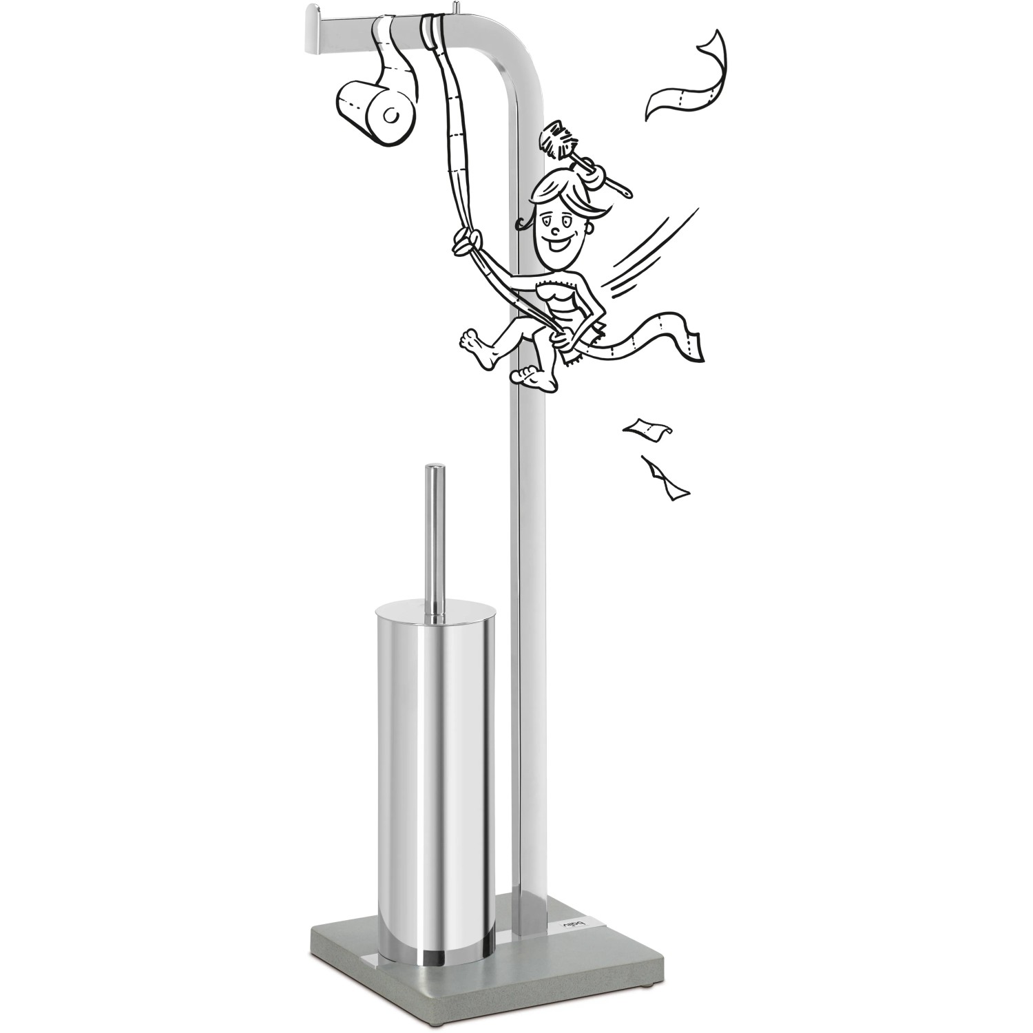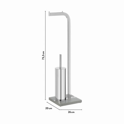 Vedle toalety je volně stojící souprava WC štětky vždy po ruce. Má výšku 73,3 cm, šířku 20 cm a hloubku 26 cm. Souprava je vyrobena z nerezové oceli, má kvalitní vzhled a snadno se hygienicky čistí. Noha je vyrobena z odolného polyresinu. Výměnná hlavice štětky s průměrem 8 cm (velikost L) je šetrná k životnímu prostředí.