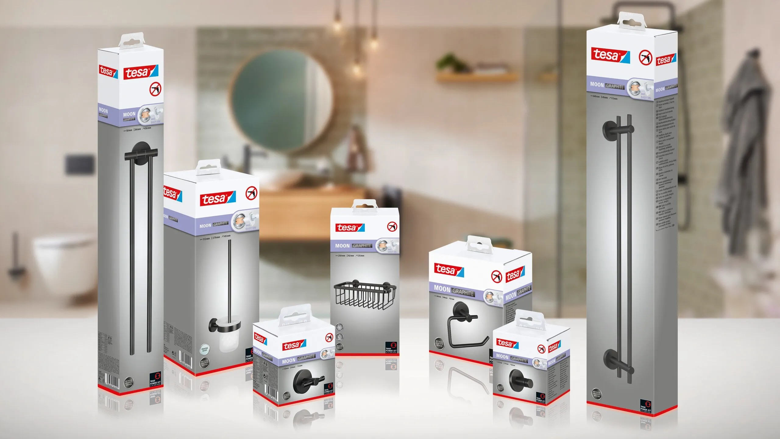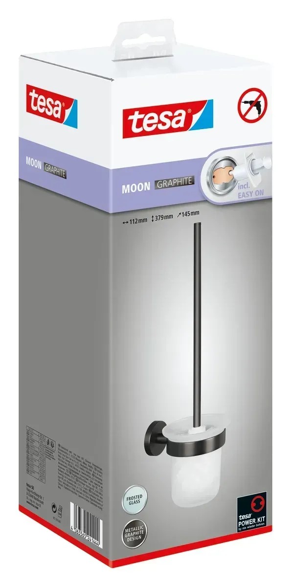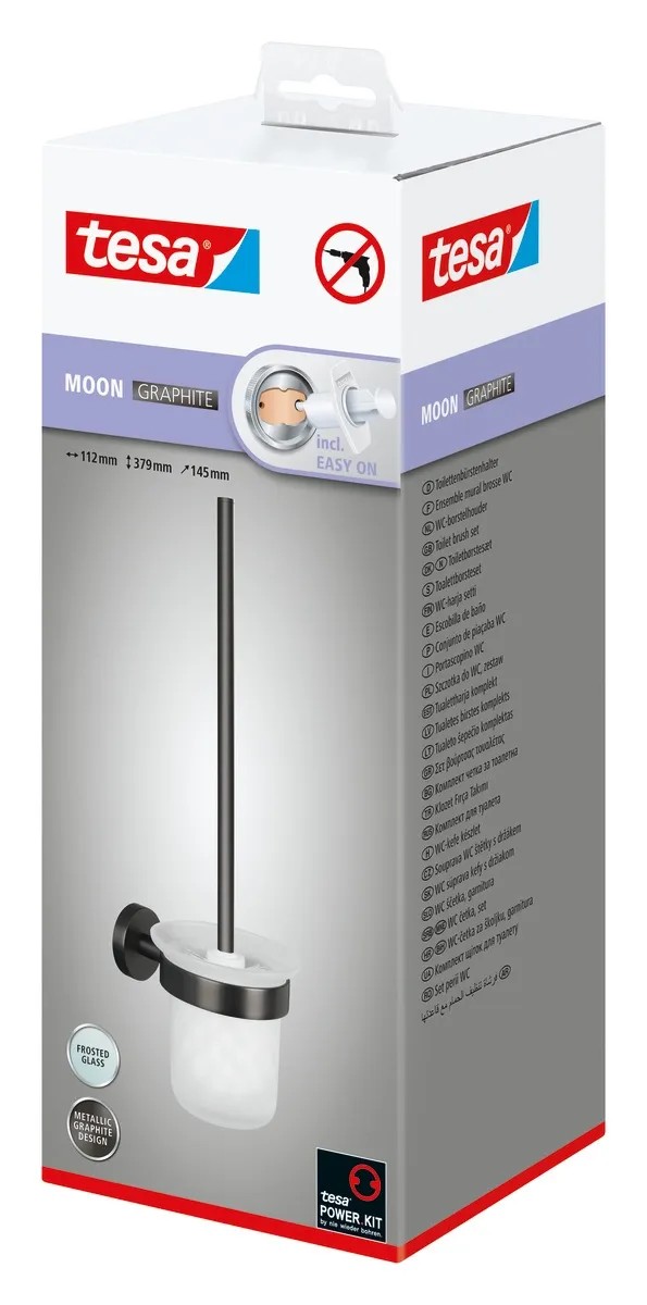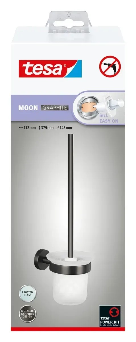 tesa Souprava WC štětky s nástěnným držákem Moon, grafitová, 397 x 112 x 145 mm