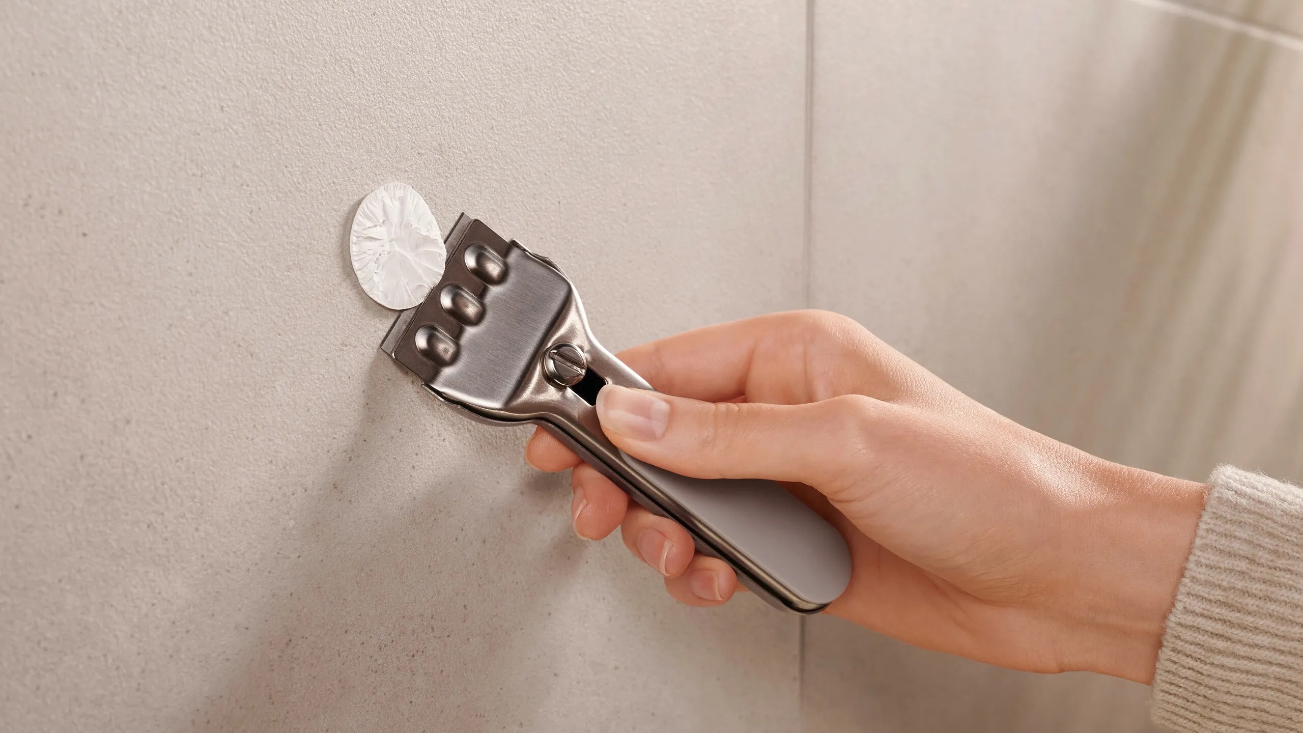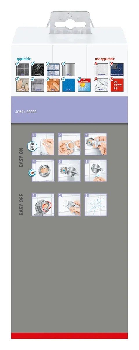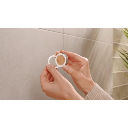 Držák lze i bez vrtání bezpečně připevnit ke stěně pomocí lepicího řešení tesa a také ho lze snadno beze stop odstranit. K montáži nejsou zapotřebí manuální dovednosti. Po 12 hodinách zaschnutí vytváří lepidlo spolehlivý spoj. S adaptérem BK20 ji lze snadno opět připevnit na jiné místo.