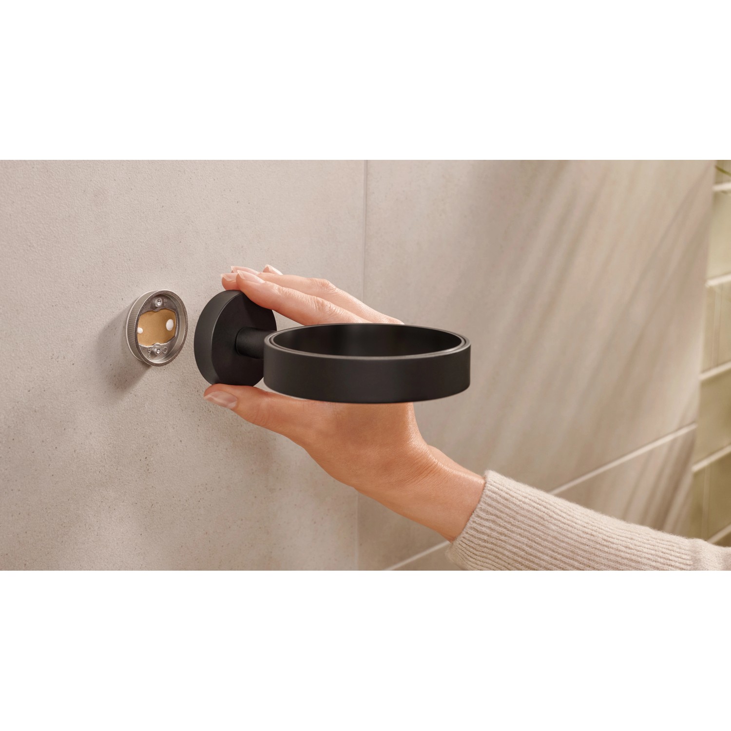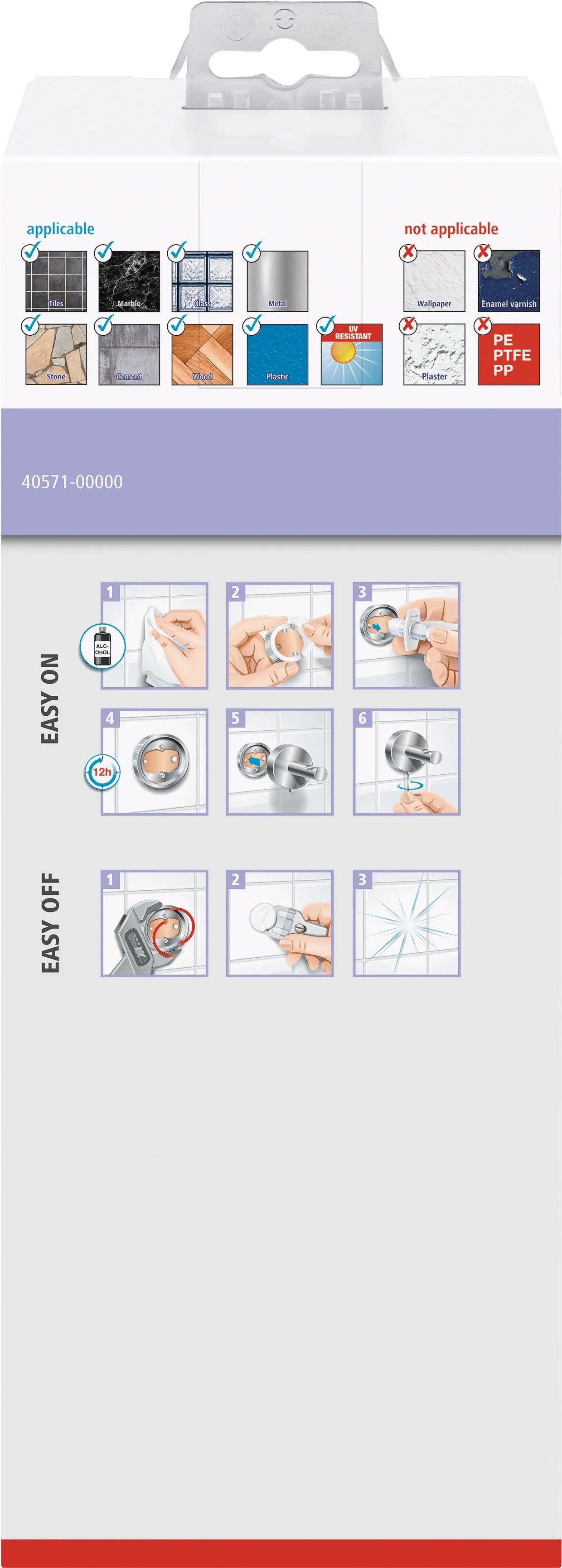 Držák lze i bez vrtání bezpečně připevnit ke stěně pomocí lepicího řešení tesa a také ho lze snadno beze stop odstranit. K montáži nejsou zapotřebí manuální dovednosti. Po odstranění možnost opětovného využití s novým adaptérem BK20 (prodává se i samostatně).