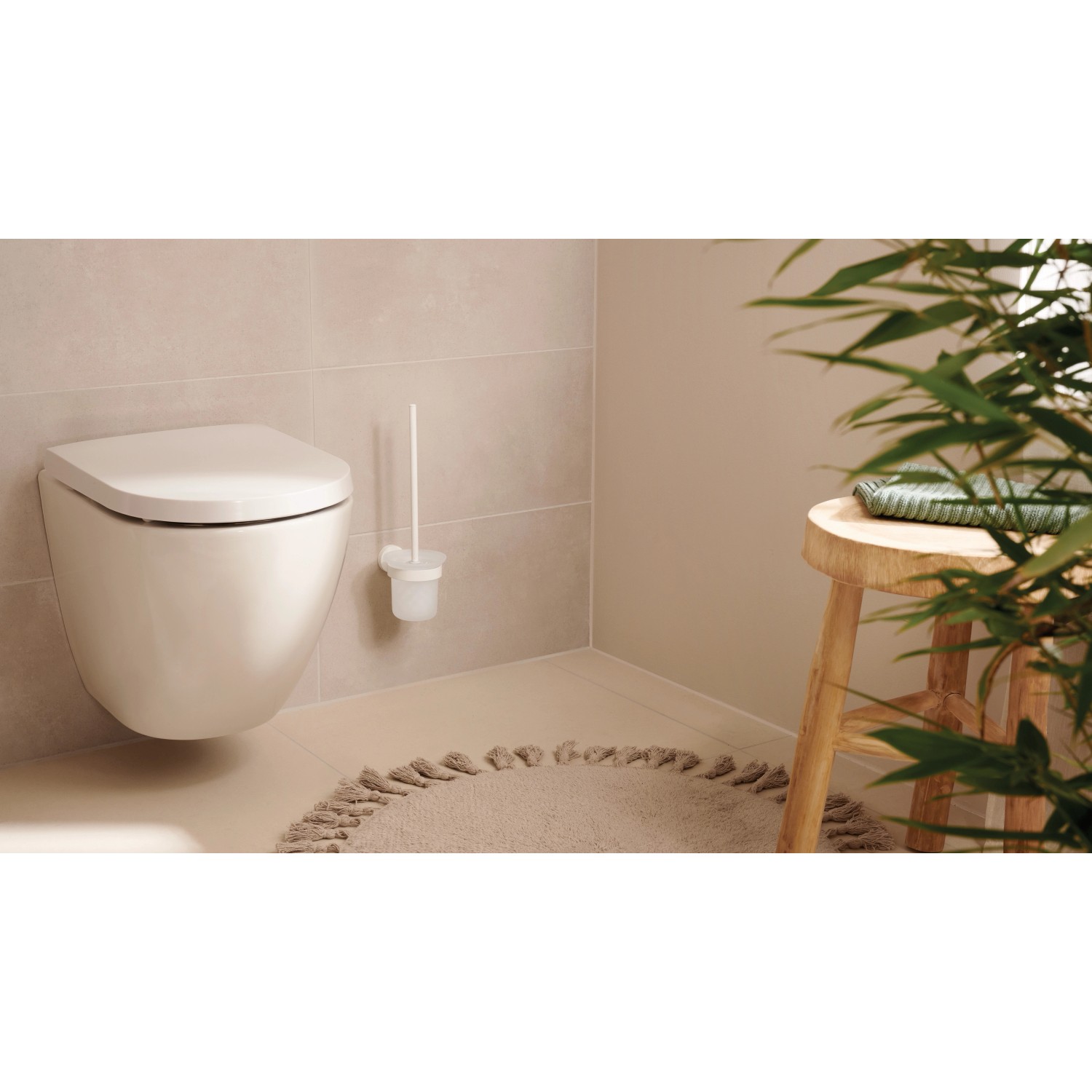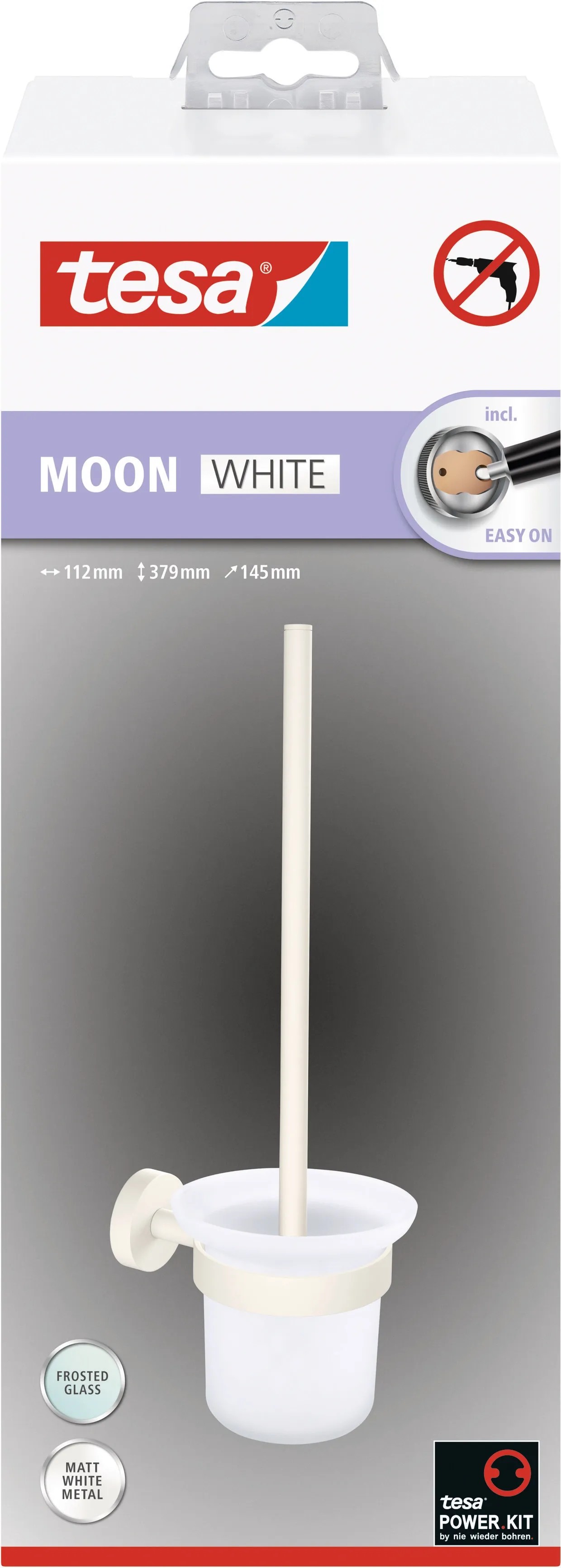 tesa Souprava WC štětky s nástěnným držákem Moon, matná bílá, pr. 11 x 38 cm