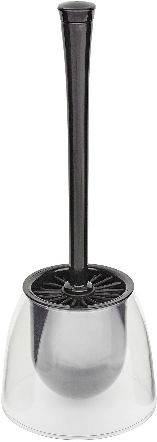 Nápaditý držák WC štětky se skvěle hodí do koupelny a na WC pro hosty. Je vyroben z kvalitního plastu (PS) s transparentní vnější nádobou a černou vnitřní nádobou. Hygienická silikonová štětka má antiadhezní účinek a disponuje výměnnou černou hlavicí štětky o průměru 8,5 cm. WC štětka je samočisticí, zbytky se jednoduše opláchnou.