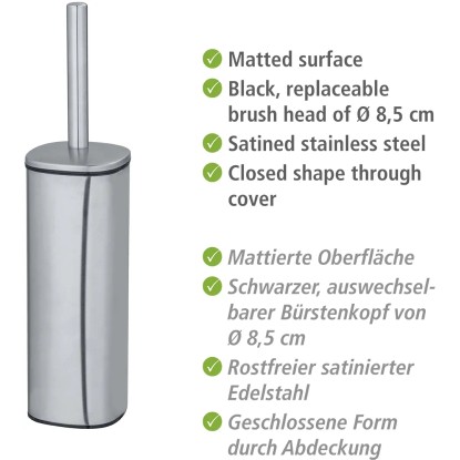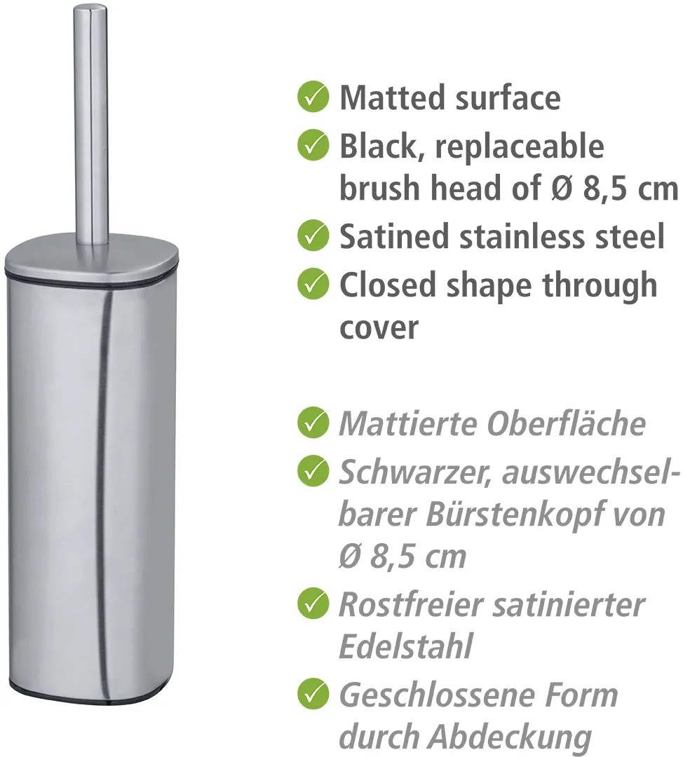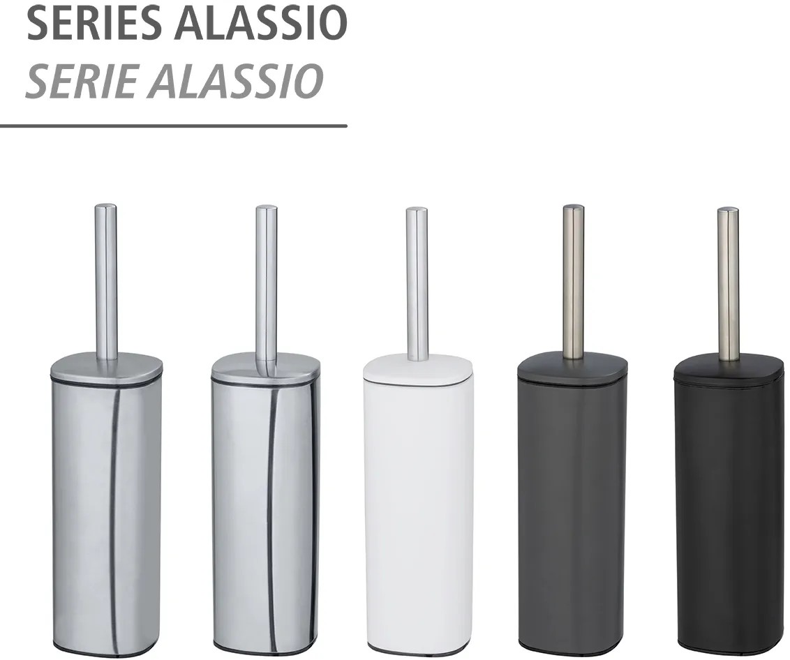 Wenko WC štětka Alassio, matná stříbrná, 9,3 x 9,3 39,2 cm