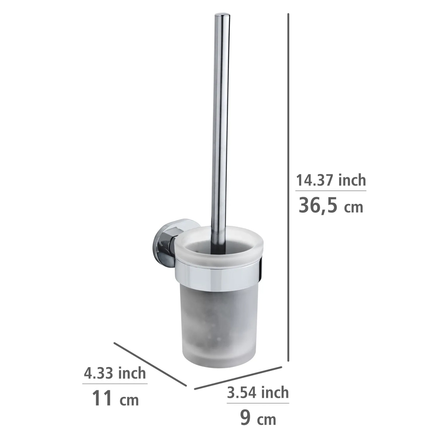 Praktická vyjímatelná nádoba držáku na WC štětku Wenko Maribor je vyrobena ze satinovaného skla. Doplněk se nenápadně a elegantně začlení do téměř jakékoliv koupelny. Plastovou hlavici štětky (průměr 7,5 cm) je možné vyměnit.