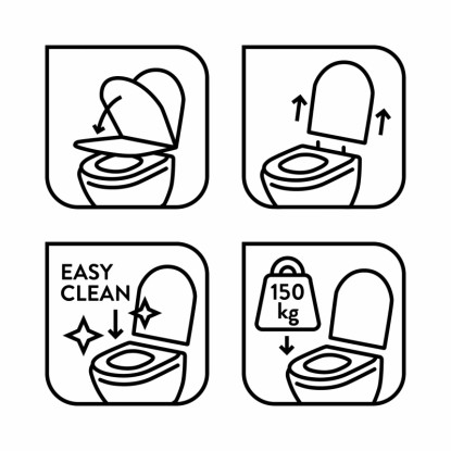 Poklop a sedátko jsou opatřeny vícevrstvým lakem proti vlhkosti, a proto se snadno čistí, díky úpravě Easy Clean je povrch materiálu velmi hladký a bez pórů, takže se nečistoty neuchycují tak snadno. Pro zvlášť důkladné čištění můžete WC sedátko díky funkci Quick Release lehce sundat a opětovně nasadit. Sedátko lze snadno očistit vodou a čisticími prostředky.