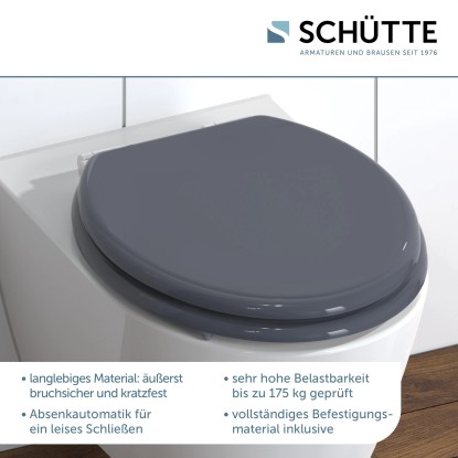 Kvalitní WC antracitové sedátko Eisl s dřevěným jádrem a automatickým sklápěním má standardní velikost a hodí se téměř na všechny běžné WC mísy. Díky pozvolnému zavíracímu systému můžete víko a sedátko zaklapnout bez nepříjemného hluku. Toto WC sedátko z odolného dřevěného jádra je nerozbitné a odolné proti poškrábání, takže má dlouhou životnost. Hladký povrch umožňuje snadné a hygienické čištění. Eisl WC sedátko lze velmi snadno namontovat a dodává se připravené k montáži včetně montážního materiálu. Kromě toho disponuje nastavitelnou upevňovací technologií, která umožňuje variabilní montáž.