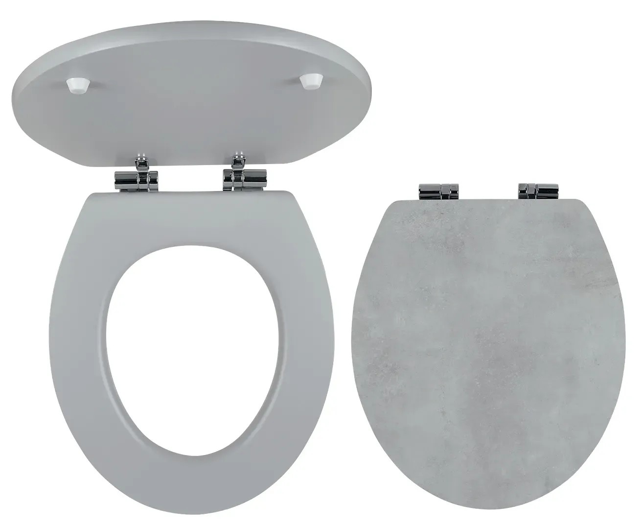 WC sedátko Ferro WC/SOFTSTONE1 z MDF s potiskem a kovovými závěsy v barvě chromu. S funkcí tichého zavírání. Dekor betonu.