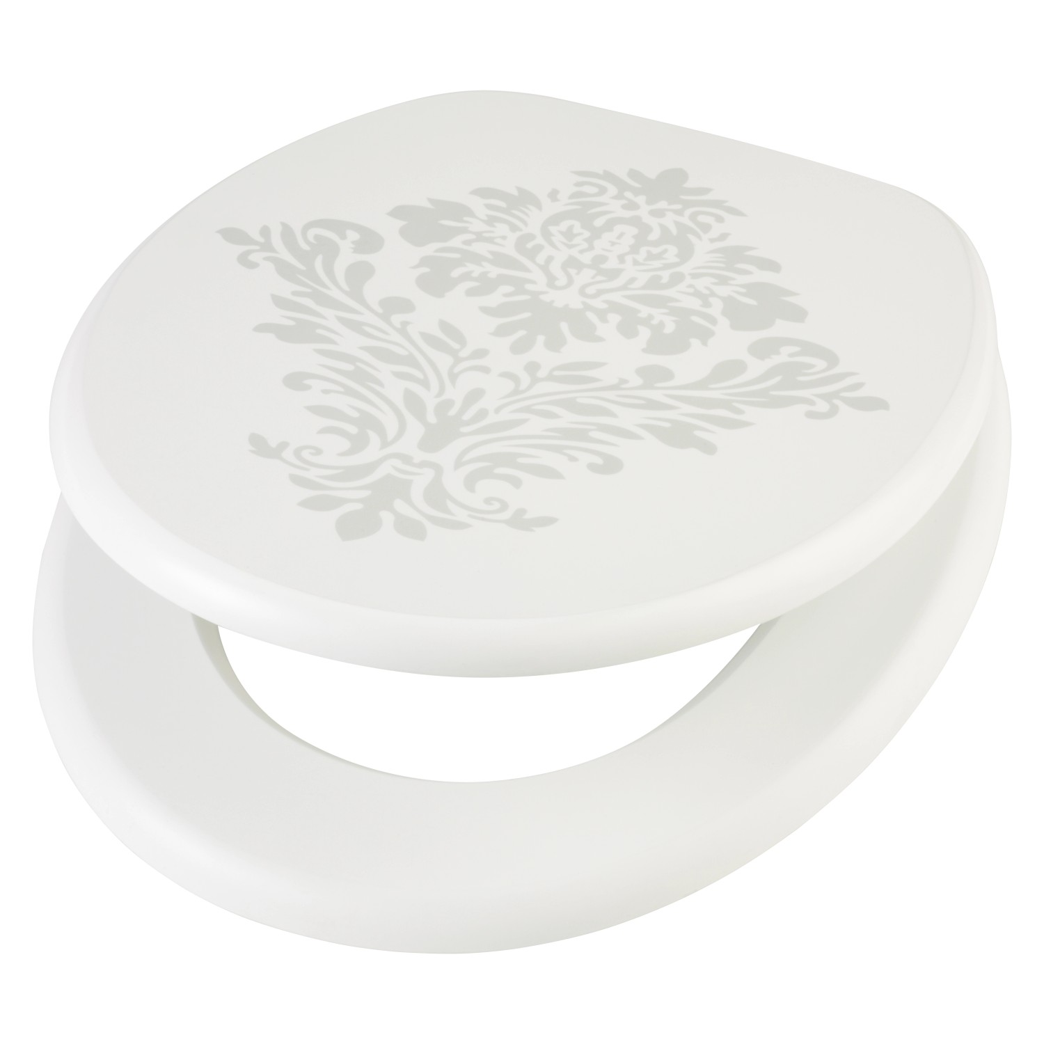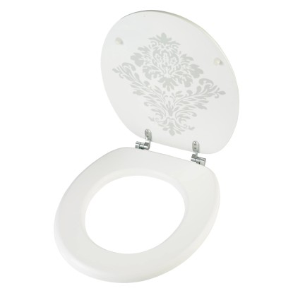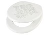 Bílé OBI DECO-LINE WC sedátko Calapa má dřevěné jádro a je opatřeno kovovými závěsy. Vyznačuje se také vysokou materiálovou pevností a je zatížitelné do 150 kg. Lakované povrchy se snadno čistí. Víko WC sedátka vizuálně umocňuje decentní motiv tetování.