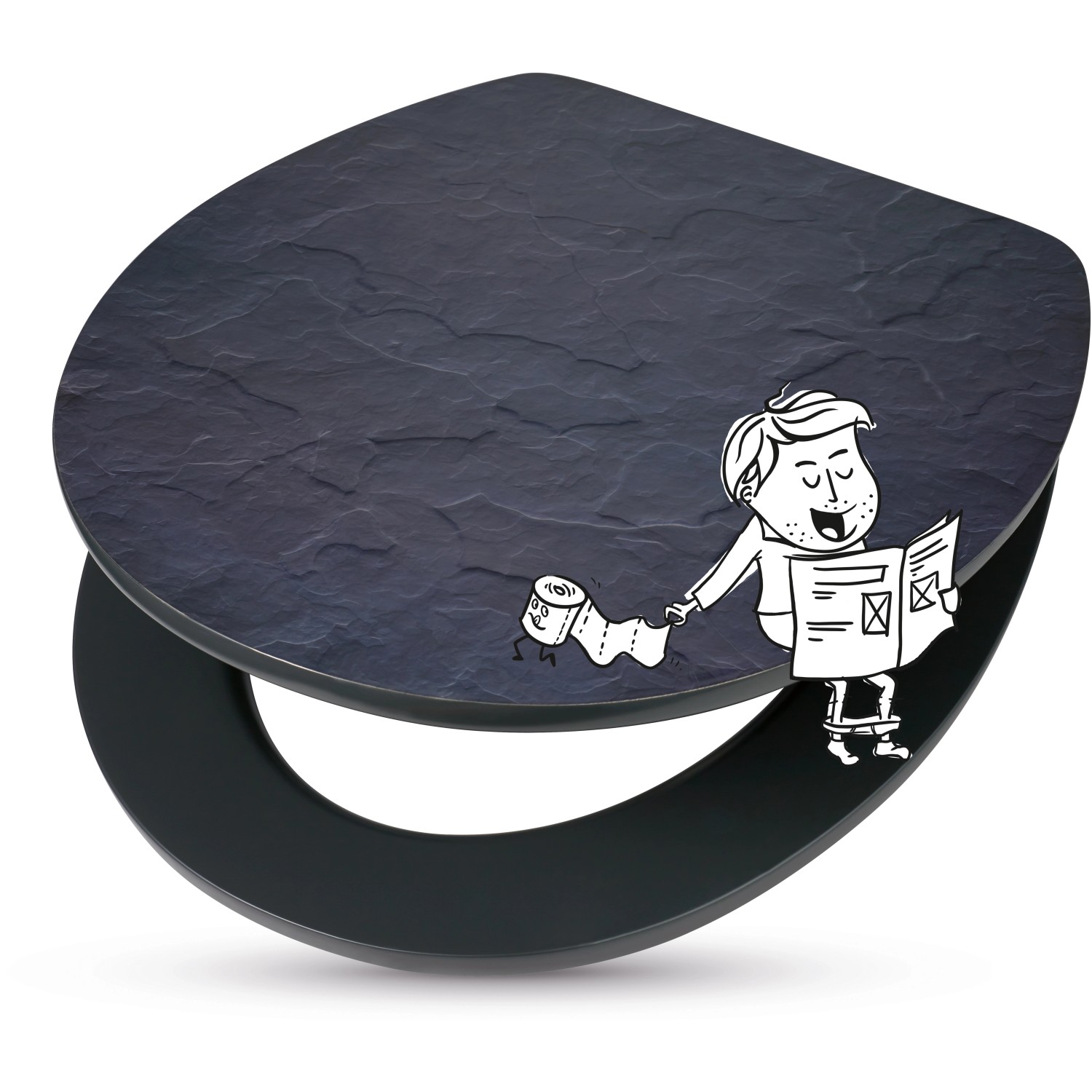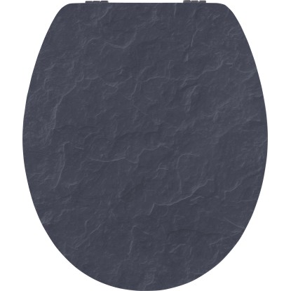 Vzhled břidlice nejen na stěně nebo na podlaze? To je možné díky baliv WC sedátku Juba. Poklop toalety v antracitové barvě vypadá jako pravá, strukturovaná břidlice. V kombinaci s tmavě šedým WC sedátkem se nástavec perfektně hodí do moderní a stylové koupelny. Poklop a sedátko mají dřevěné jádro z MDF, které je opatřeno robustní povrchovou úpravou s vysokým leskem. To zajišťuje velmi dobrou odolnost a snadnou údržbu. Vícevrstvý lak je odolný vůči vlhkosti a mokru. Aby WC sedátko a poklop při zavírání nerachotily, mají na spodní straně dorazy. Trvalé spojení obou částí zajišťují robustní závěsy.