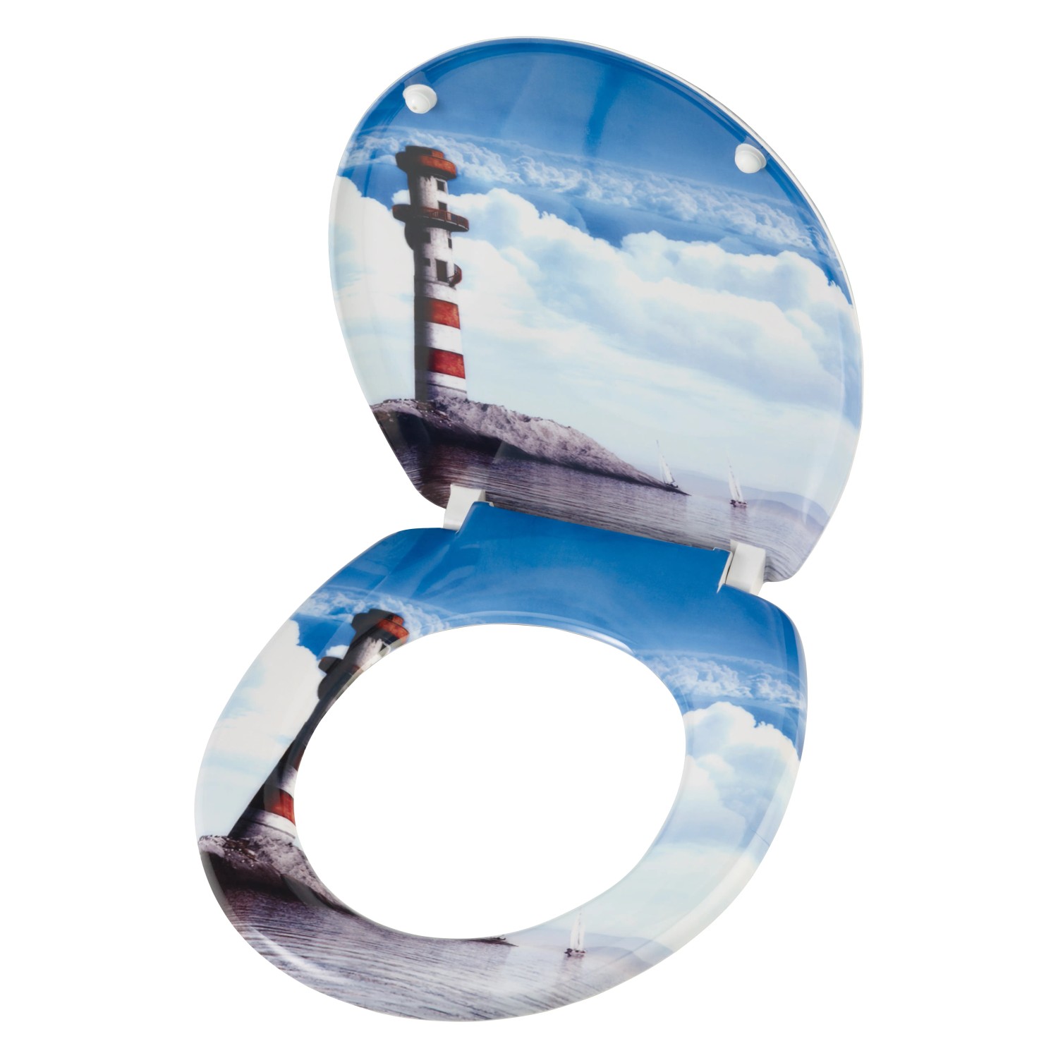 OBI DECO-LINE WC sedátko La Piedra z Duroplastu je opatřeno kovovými závěsy a automatickým sklápěcím systémem pro jemné a tiché zavírání víka. Je vysoce odolné proti zlomení i proti poškrábání a je zatížitelné až do 150 kg. Povrchy lze rychle a snadno čistit. Motiv majáku přináší do Vaší koupelny nádech mořského pobřeží.