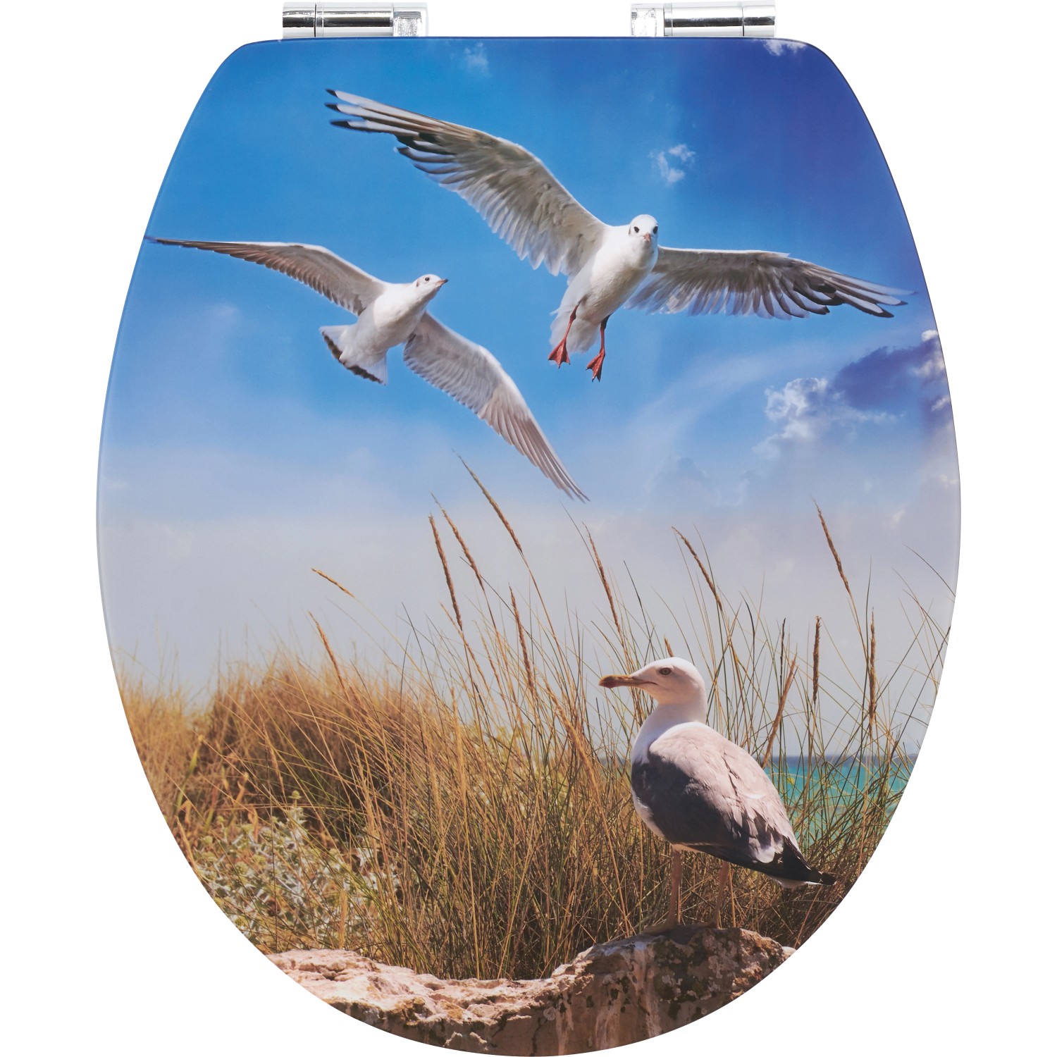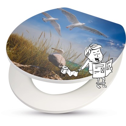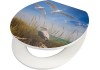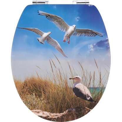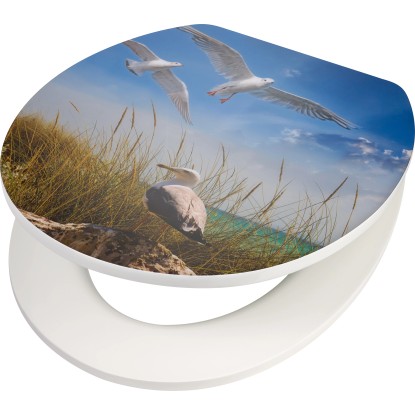 Již cítíte, jak fouká vánek? WC sedátko Paru značky baliv vykouzlí díky hezkému motivu racků ve vaší koupelně nebo na WC pro hosty přímořskou atmosféru. Sedátko a vnější strana poklopu tvoří kontrast v neutrálním bílém provedení. Dřevěné jádro z MDF je robustní. Vícevrstvé lakování s dlouhou životností představuje ideální ochranu před vlhkostí. Hladký a odolný povrch vám umožní snadné čištění. Dorazy na spodní straně WC sedátka chrání materiál před drobným poškozením. Stabilní spoj mezi oběma díly umožňují robustní závěsy. Aby ve vedlejší ložnici nikdo nespadl z postele: Poklop se zavírá téměř neslyšně díky automatickému sklápění. Funkce Quick-Release zajistí obzvláště rychlé a důkladné vyčištění WC sedátka. Lze ho snadno sundat a opět nasadit.