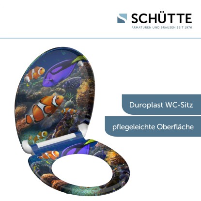 SEA LIFE WC sedátko z duroplastu. Kreativní design až do těch nejmenších detailů. Myšlenka, že koupelna slouží pouze ke každodenní hygieně, patří do vzdálené minulosti. Důležité hodnoty, jako je rozmanitost, kvalita produktů a jedinečnost, otevírají nové možnosti. . Vlastnosti produktu. . Jedinečnost: zajímavý potisk SEA LIFE. Pohodlí a funkčnost: Vysoce kvalitní WC sedátko se systémem jemného dovírání (víko a sedátko se dovírá jemně a tiše). Praktičnost: WC sedátko lze snadno sejmout pomocí systému rychlého uvolnění. WC sedátko má běžnou velikost, takže se hodí pro všechny standardní WC mísy. Flexibilita: technologie nastavitelného upevnění pro různé metody montáže. Inovativní technologie uchycení: Lepicí podložky brání klouzání WC sedátka. Dlouhá životnost: mimořádně tvrdý povrch z duroplastu je nerozbitný a odolný proti poškrábání. Snadná údržba: povrch s uzavřenými póry WC sedátka z duroplastu umožňuje snadné a hygienické čištění. Díky kompletní montážní sadě a jednoduchým pokynům je montáž velice snadná. . Technické údaje: . Rozměry (Š x V x H): 374 x 450 x 40 mm. Hmotnost produktu je přibl. 1 657 g. Barva: potisk na třech stranách. . Kontrola kvality: Přísné kontroly kvality a špičkové materiály zajišťují vysokou úroveň bezpečnosti a dokonalé kvality.