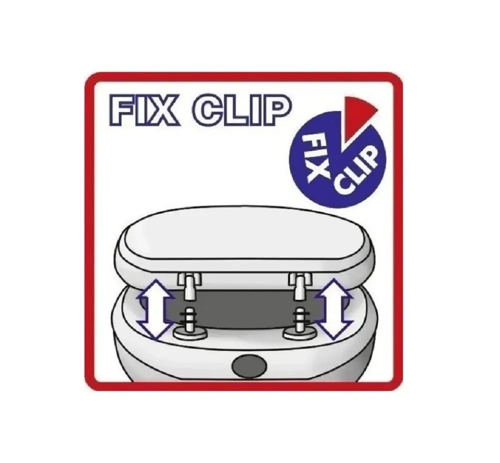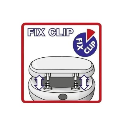 Robustní závěsy Fix-Clip z nerezové oceli zajišťují trvalé spojení mezi oběma částmi a současně umožňují záchodové prkénko pro obzvláště důkladné čištění pomocí jediného tlačítka snadno vyjmout a poté nasadit zpět. Součástí dodávky je nástěnný nárazník. Dodatečná pryžová vložka, která se připevňuje k záchodové míse pomocí nástavce Fix-Clip, zabraňuje sklouznutí záchodového prkénka. Mechanismus měkkého zavírání (Easy Close) za vás tiše zavře víko lehkým poklepáním.