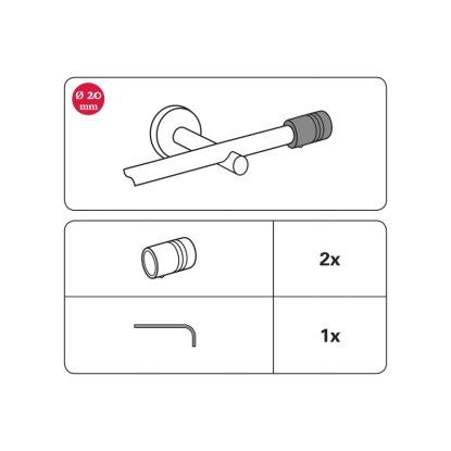 Koncovka ideálně doplňuje záclonovou tyč ze stylové soupravy Chicago o průměru 20 mm značky Gardinia a je dostupná v odpovídající barvě.