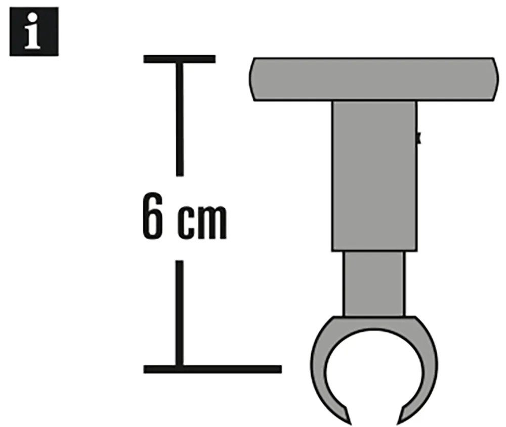Stropní držák je vyroben z robustního kovu. Hodí se jako ozdobný prvek pro zavěšení záclonové tyče nebo záclonové tyče s drážkou a kovové montážní desky. Pro rychlou a snadnou montáž se dodává upevňovací materiál.
