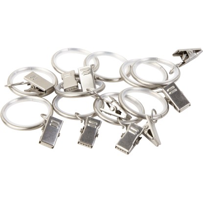 Kroužky umožňují spolehlivé a dekorativní zavěšení záclon a závěsů na záclonovou tyč. Záclonové kroužky jsou opatřeny praktickými žabkami pro snadné připevnění látky. Lze je použít na záclonové tyče o průměru 19 mm. Vysoce kvalitní kroužky a žabky jsou vyrobeny z kovu. Materiál má dlouhou životnost a dobrou stabilitu. Protože je odolný a stálobarevný, vypadá stále dobře. Díky bílému provedení lze příslušenství pro záclony kombinovat s mnoha závěsy a látkami. Pro připevnění zacvakněte žabky na horní konec záclony a nasuňte kroužky na tyč. Součástí dodávky je 10 ks.