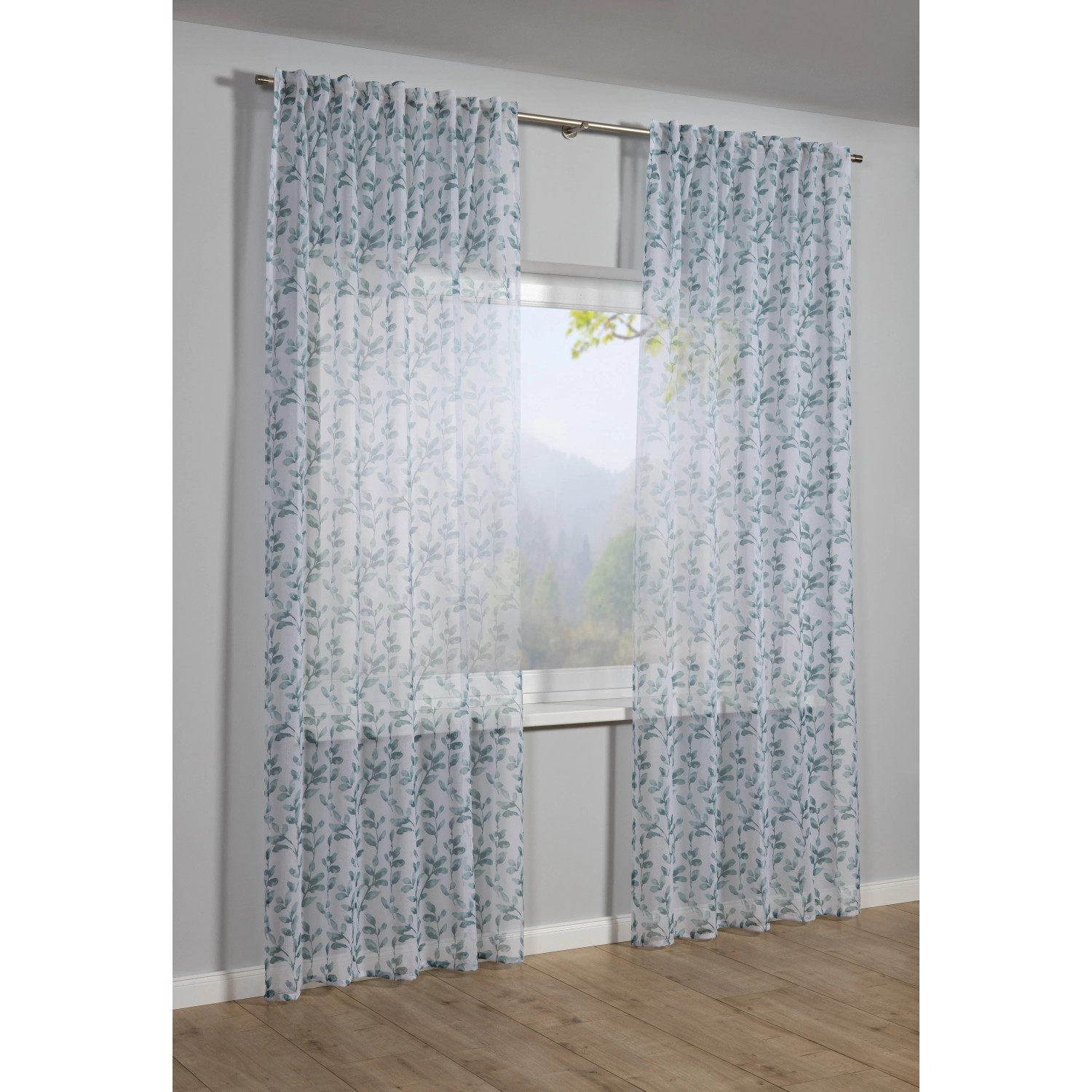 Sehlbach Závěs se skrytými poutky, listy, zelený, 245 x 135 cm
