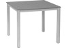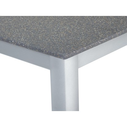 Stříbrný rám je vyroben z hliníku, který se snadno udržuje a je odolný proti korozi. Díky tomu je zahradní stůl lehký a lze jej bez větší námahy přemístit do požadované polohy. Čtyři nohy stolu jsou rovné a nemají žádné viditelné vzpěry. Stůl je 75 cm vysoký, 90 cm hluboký a 90 cm dlouhý. Ke stolu se tak vejdou až čtyři osoby.