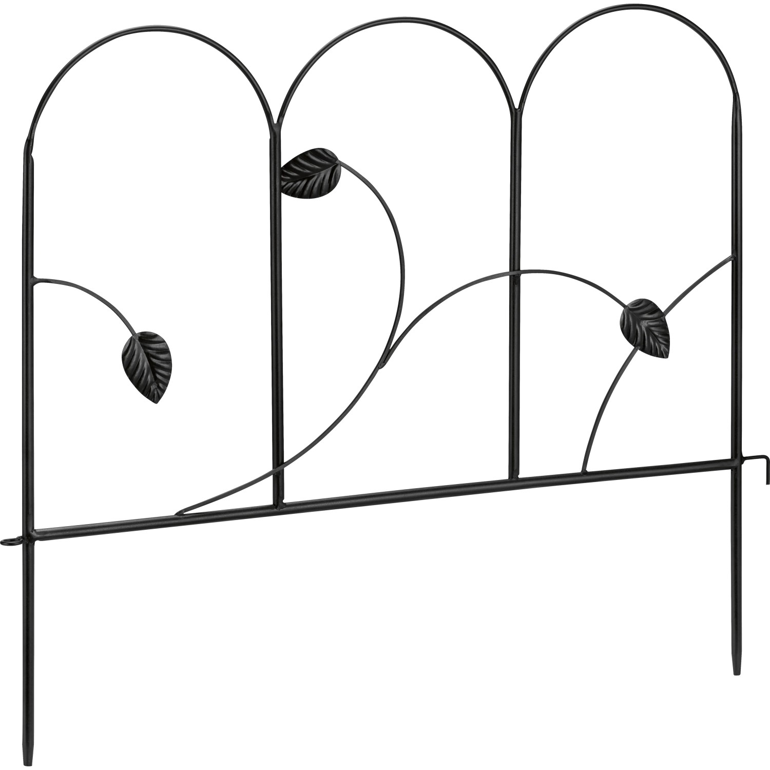 Kovový dekorativní zahradní obrubník, lístky, černá, 56,5 x 48 cm