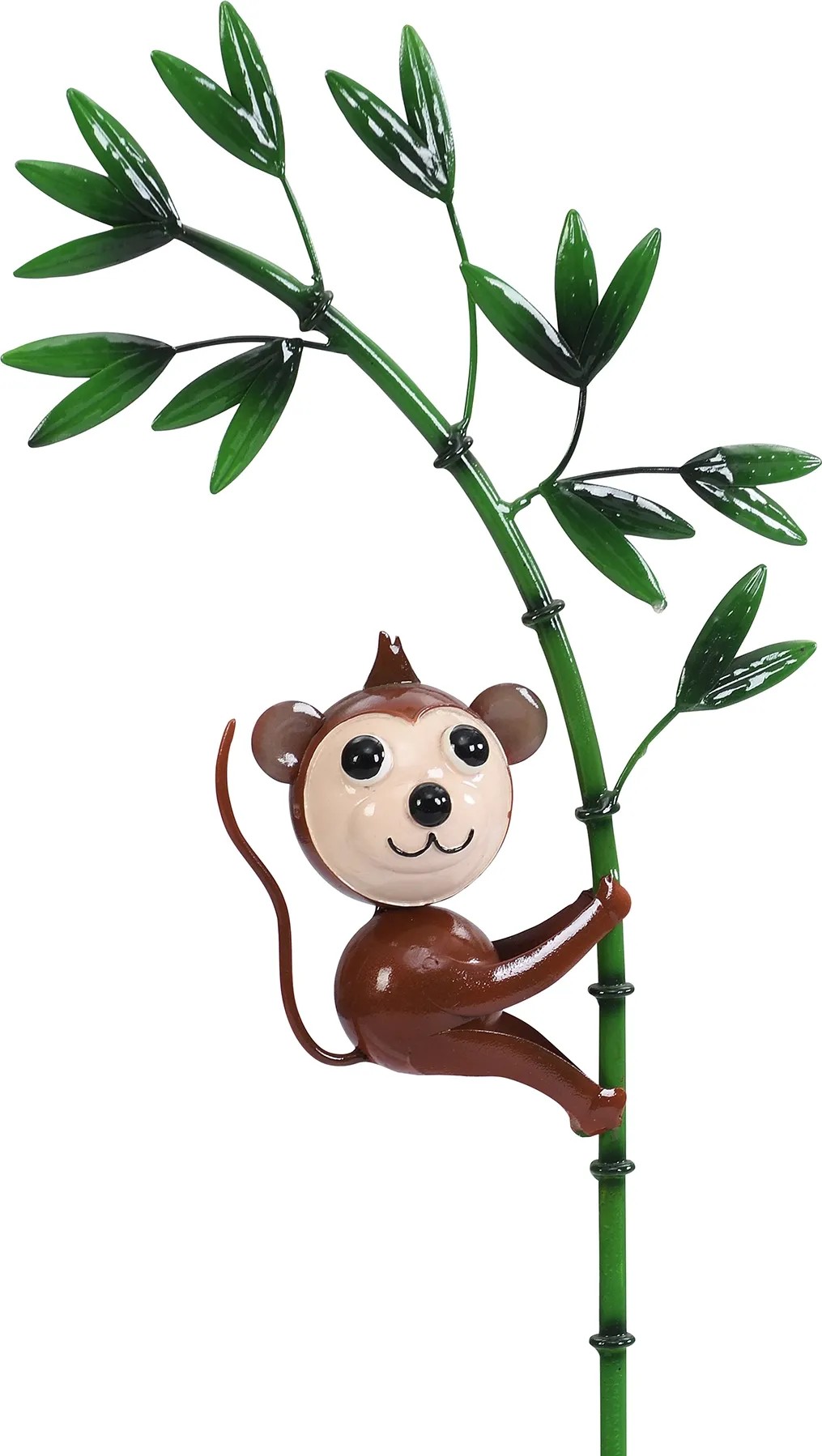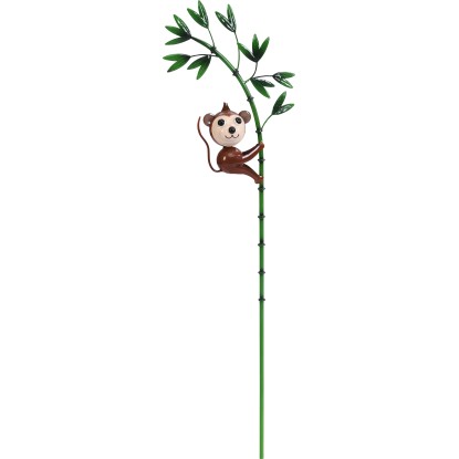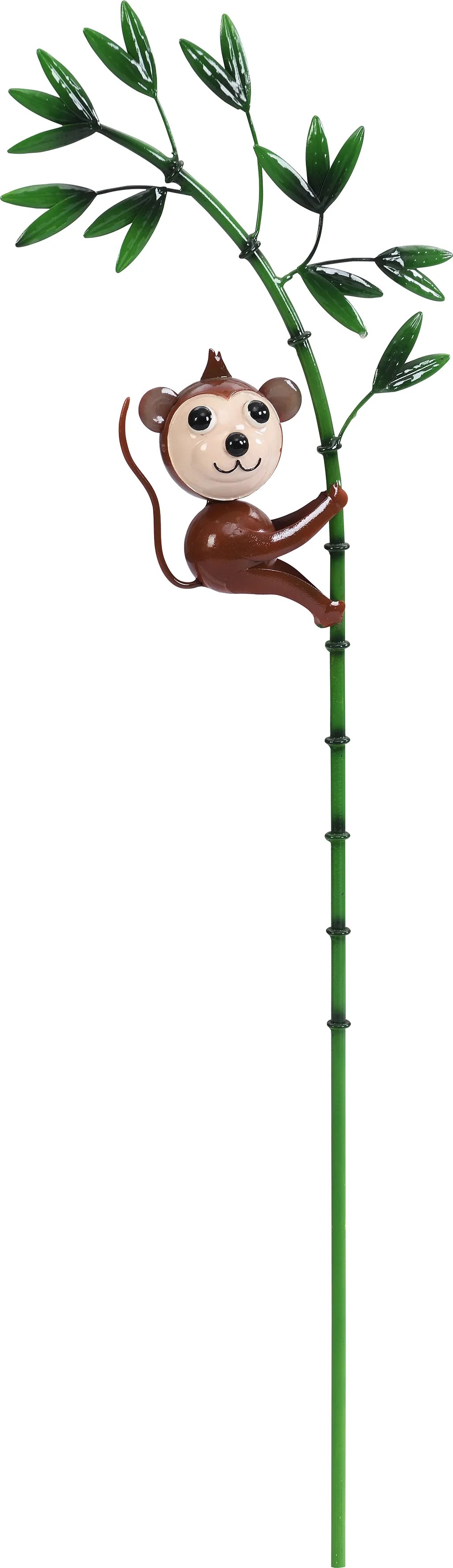 Veselý zahradní zápich upoutá pozornost na zahradě nebo na terase. Lze jej jednoduše zapíchnout do země a na louku nebo jím ozdobit květináč. Zápich představuje zelenou bambusovou větev, po které leze malá hnědá opička. Zápich je vyroben z lakovaného kovu. Materiál je trvanlivý a odolný vůči povětrnostním vlivům. Díky rozměrům 95 x 24,5 x 7 cm (V x Š x H) můžete zahradní dekoraci umístit na různá místa.