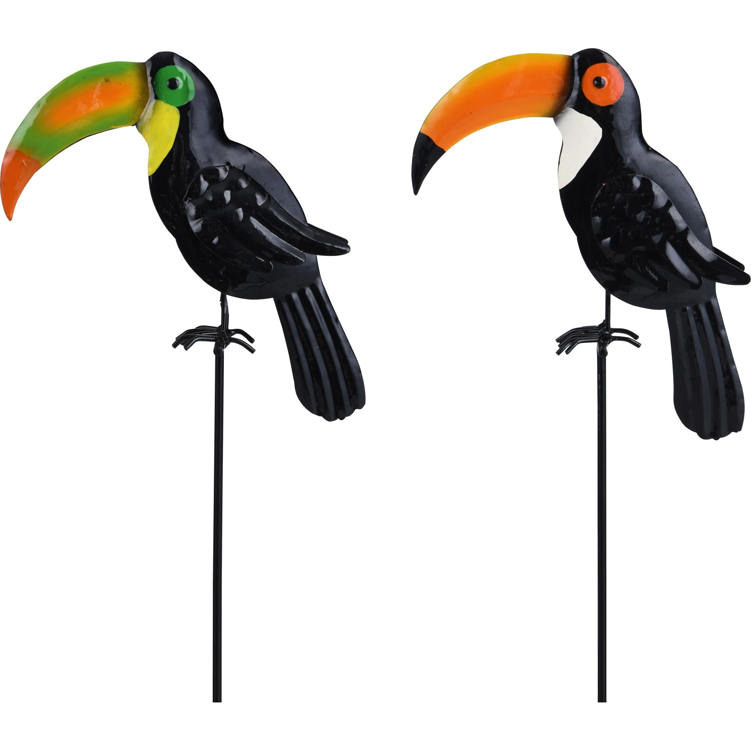 Tento pestrý zahradní zápich v podobě tukana představuje mnohostrannou dekoraci do vnitřních nebo venkovních prostor. Upoutá pozornost v záhonu, na terase nebo u vstupu do domu. Díky dlouhému, integrovanému zemnímu bodci jej snadno umístíte. Zahradní dekorace je vyrobena z detailně pomalovaného kovu. Tukan je k dostání buď v zelené nebo oranžové barvě.