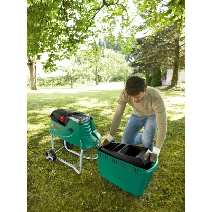 Bosch elektrický turbínový drtič AXT 25 TC slouží k drcení větví, větviček a listí všeho druhu. Elektrický drtič pracuje obzvláště potichu, takže jím nikoho nebudete rušit i při ranním drcení. Pomocí drtiče můžete snadno a bez námahy zlikvidovat na vaší zahradě svůj zahradní odpad, jako jsou ořezy živých plotů, zbytky listů, větve, apod. Nasekaný materiál se pak ideálně hodí jako kompost.