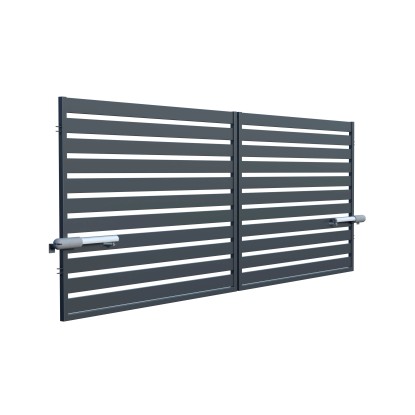 Plotový systém SAFIR je vyroben z vodorovných lamel a rámu a je díky své jednoduché linii vhodný pro klasické i moderní objekty. Systém ze svařovaných jeklových profilů. Balení obsahuje úchyty, panty 4 x a kompletní elektrický pohon se 2 ovladači. Nutno dokoupit sloupky 2 ks nebo kotvy do zdi 4 ks a dorazy křídel 2 ks.