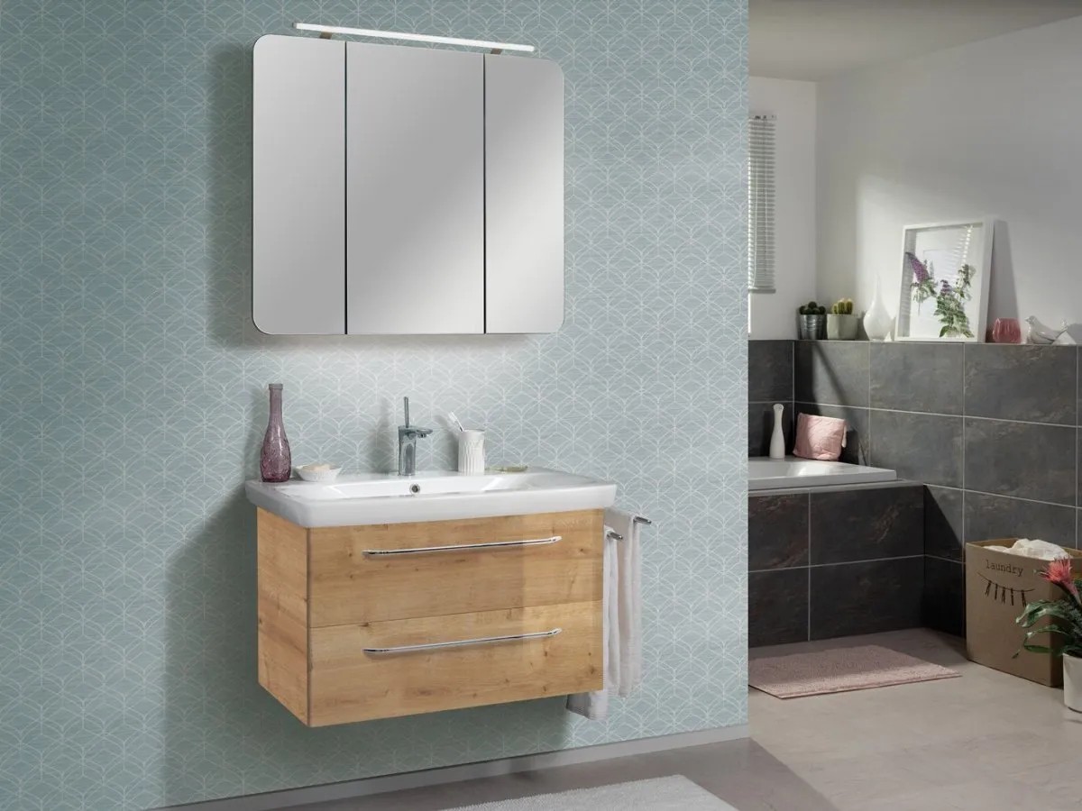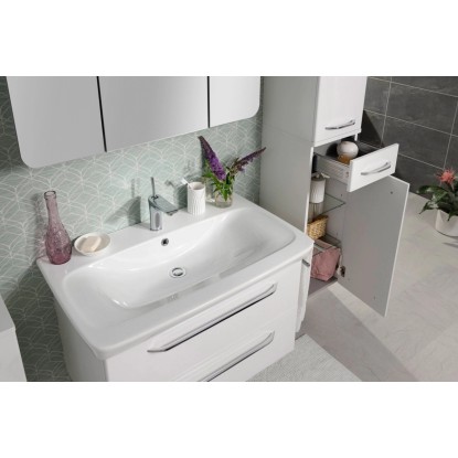 Série koupelnového nábytku FACKELMANN MILANO zaujme svým harmonickým, atraktivním a vkusným designem v příjemných a uklidňujících barvách. Koupelnový nábytek série MILANO je k dispozici ve 3 barevných provedeních - bílá ve vysokém lesku, sukatý dub a kombinace bílá ve vysokém lesku a sukatý dub. Korpusy skříněk mají matnou bílou barvu a příčky a zadní stěny mají stříbrnošedou barvu. Veškerý koupelnový nábytek série MILANO lze jednoduše kombinovat dle libosti mezi sebou. Kromě koupelnového nábytku v této série naleznete také umyvadla, doplňkové osvětlení a zrcadla.