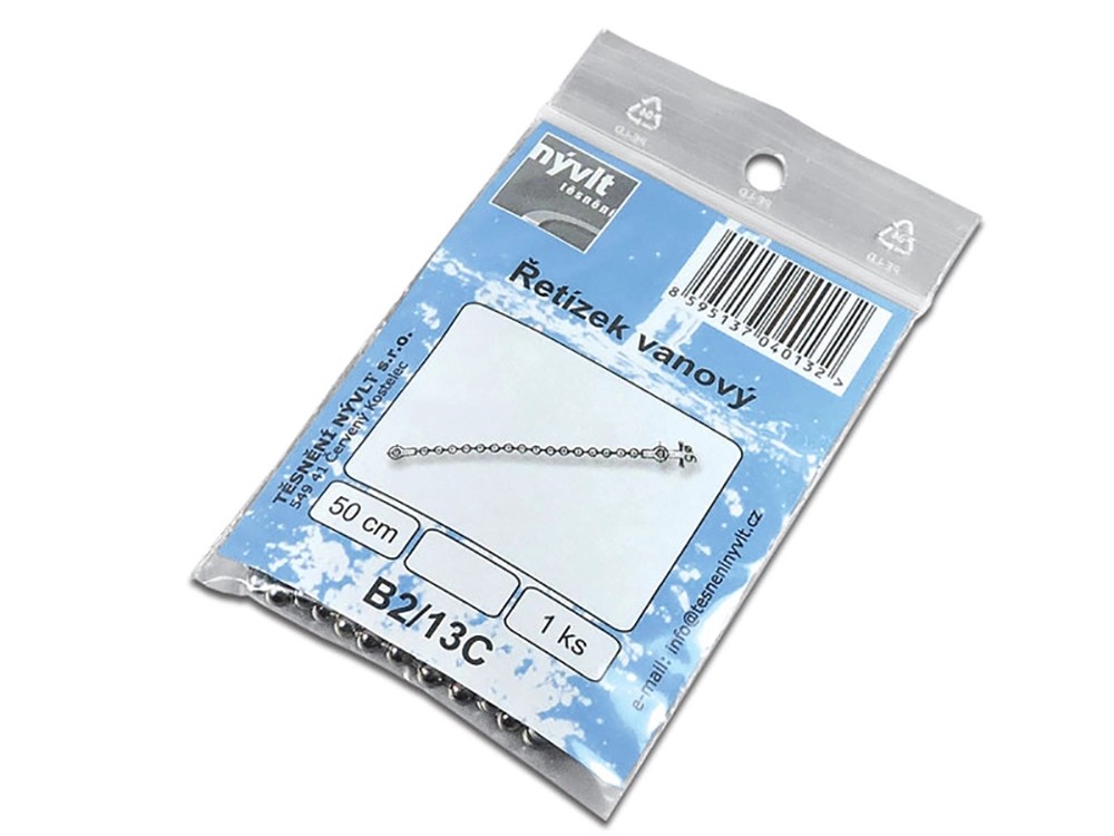 Náhradní řetízek k zátkám pro vanu, 2x očko, délka 50 cm.