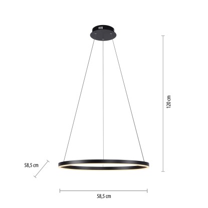 Závěsné svítidlo ze série Ritus zaujme svým minimalistickým designem v kruhovém tvaru. Závěsné svítidlo je drženo třemi jemnými drátěnými lany, na jejichž spodní straně vyzařuje do místnosti teplé bílé světlo s teplotou chromatičnosti 3000 K. Výhodou svítidla je integrovaný 3stupňový stmívač, který lze ovládat běžným nástěnným spínačem a regulovat intenzitu světla dle potřeby (100 % / 50 % / 12 %). Závěsné svítidlo Ritus představuje pěkný elegantní světelný objekt s elegantním vyzařováním.