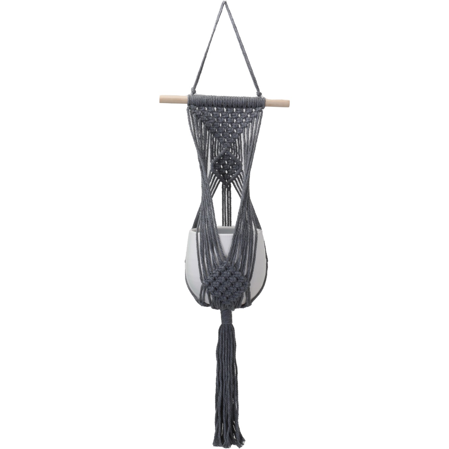 Makramé Závěs na květináč bavlněný světle šedý 82 cm