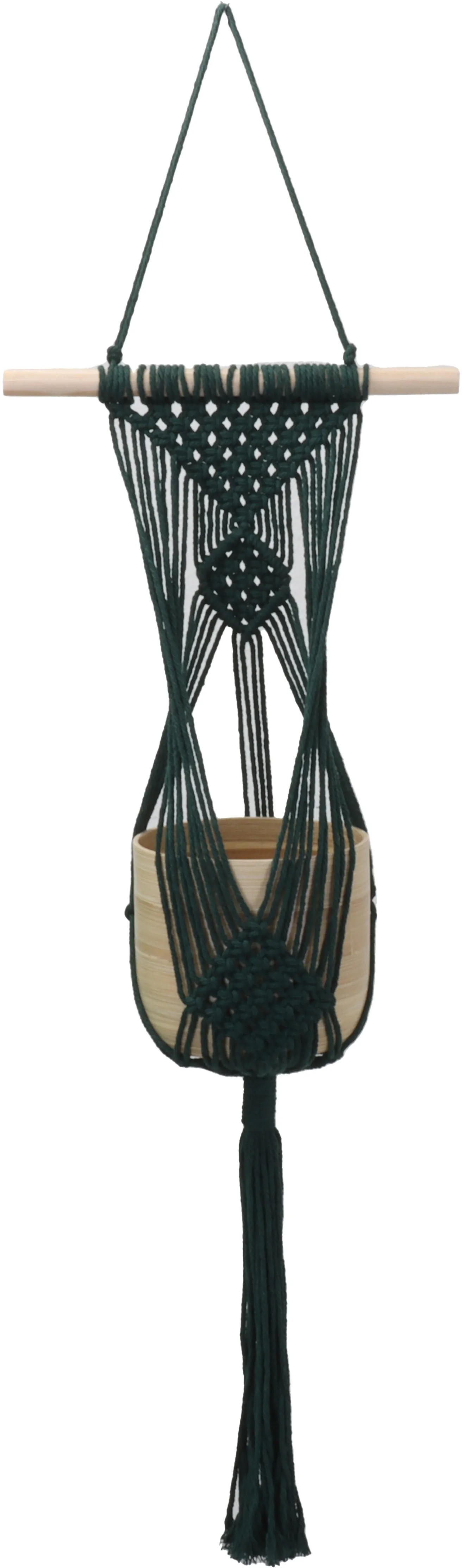Makramé Závěs na květináč bavlněný tmavě zelený 82 cm
