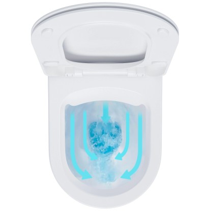 Už žádný široký lem uvnitř mísy. Dokonalou čistotu povrchu přináší bezproblémová technologie RimOff. Po každém spláchnutí (úsporný objem 3/6 l) voda cirkuluje po celém vnitřku toalety a perfektně ji opláchne bez usazování nečistot v těžko přístupných místech.
