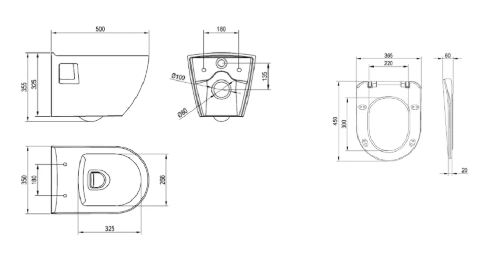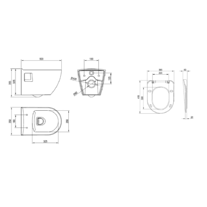 - Sedátko: Součástí balení (Duroplast, SoftClose, rozměr 365 x 450 x 60 mm)