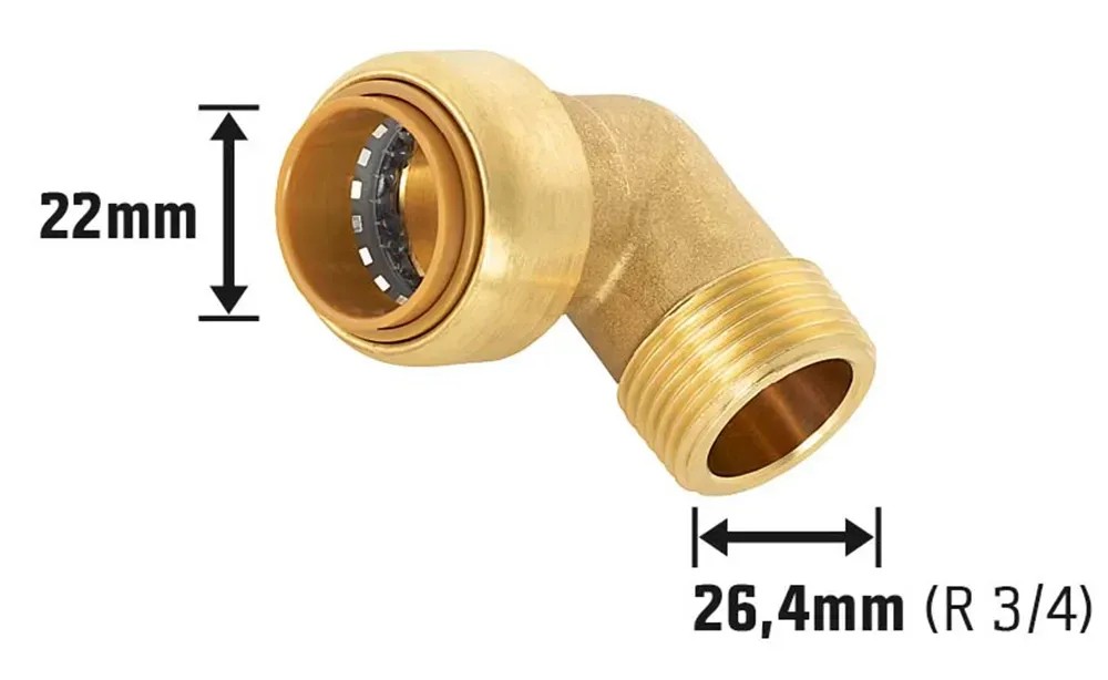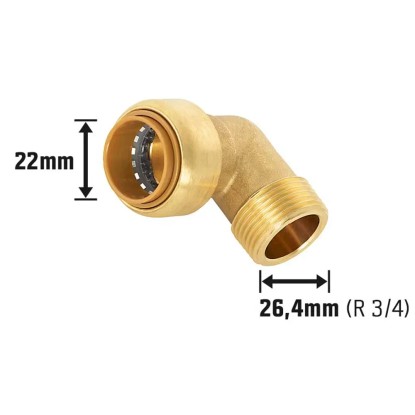 LUX-TOOLS Závitové mosazné koleno 90°, 22 x 26,4 mm (R 3/4)