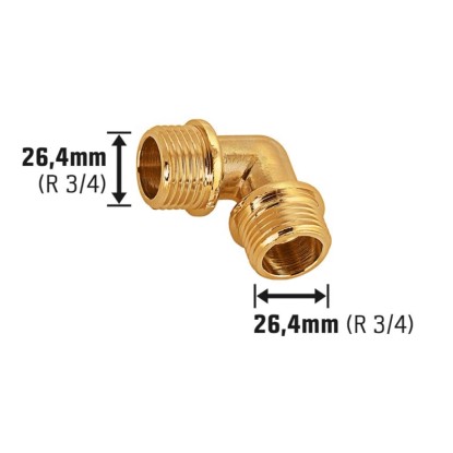 Praktické LUX-TOOLS závitové koleno se používá k rychlému spojení dvou trubek. Slouží k instalaci trubek pro teplou a studenou vodu a topení. V provedení jako koleno umožňuje změnu směru o 90°. Na druhé straně se nachází vnější závit 26,4 mm (R 3/4). Jako materiál je použita mosaz bez povrchové úpravy, která se vyznačuje robustností a dlouhou životností. Při montáži se fitinka jednoduše našroubuje. Použití je povoleno pro instalace pitné vody.
