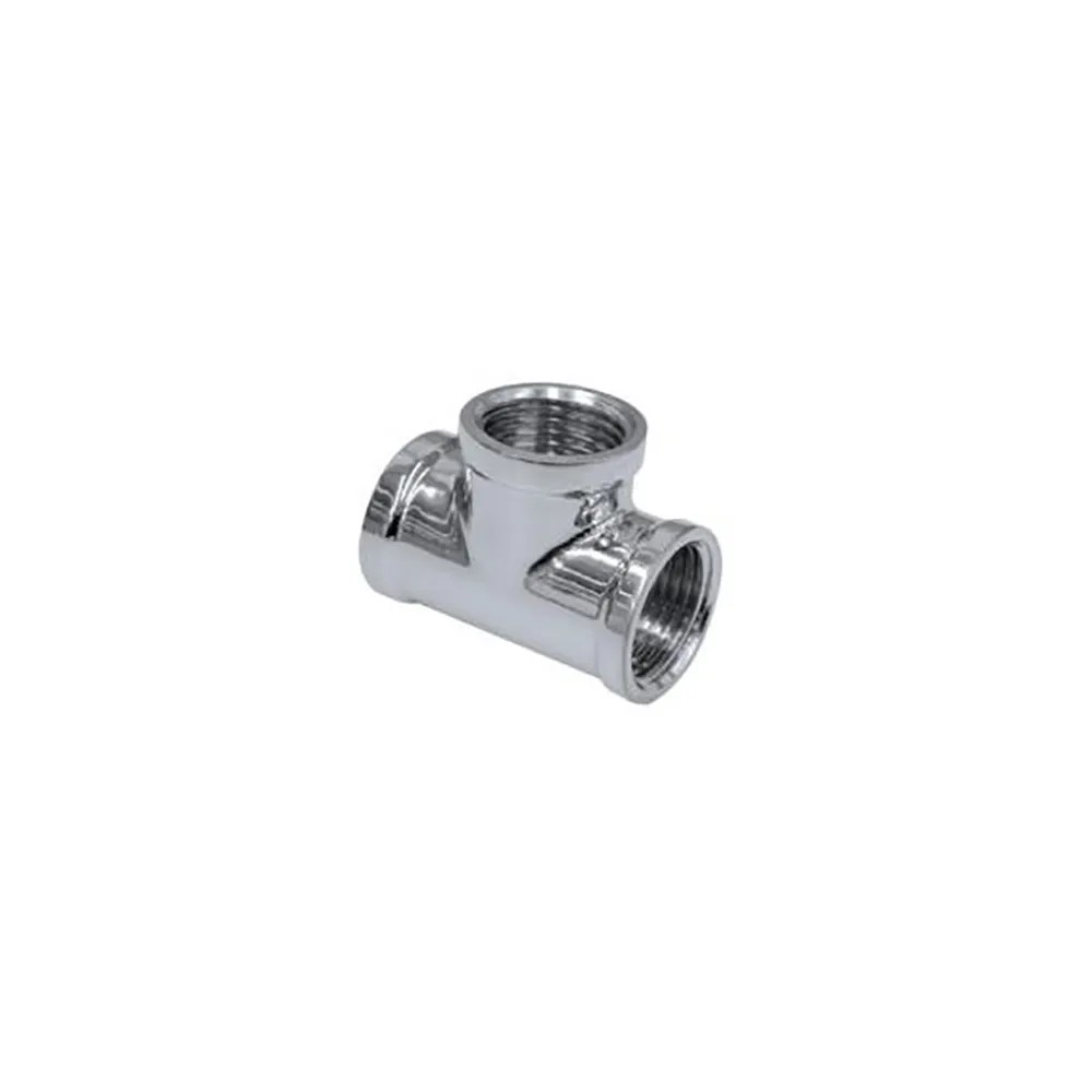 Mosazná chromovaná závitová tvarovka pro rozvod vody.