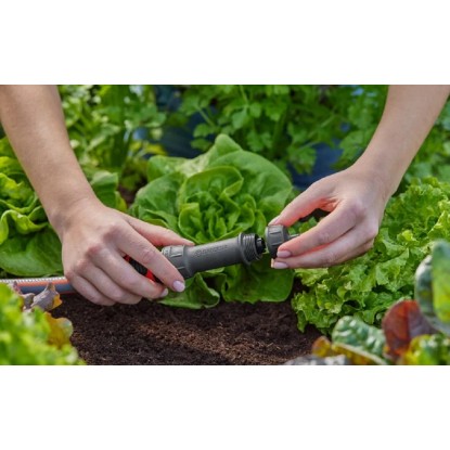 Armatura na kohoutek 4,6 mm (3/16") od společnosti GARDENA je připojena k vodovodnímu kohoutku a tvoří tak počáteční součást systému Micro-Drip. Po montáži můžete připojit 4,6mm přívodní potrubí nebo kapací zavlažovací potrubí a připojit jej k hlavní jednotce 1000 (obj. č. 13333-20) nebo hlavní jednotce 2000 (obj. č. 13310-20) z řady Micro-Drip-System.