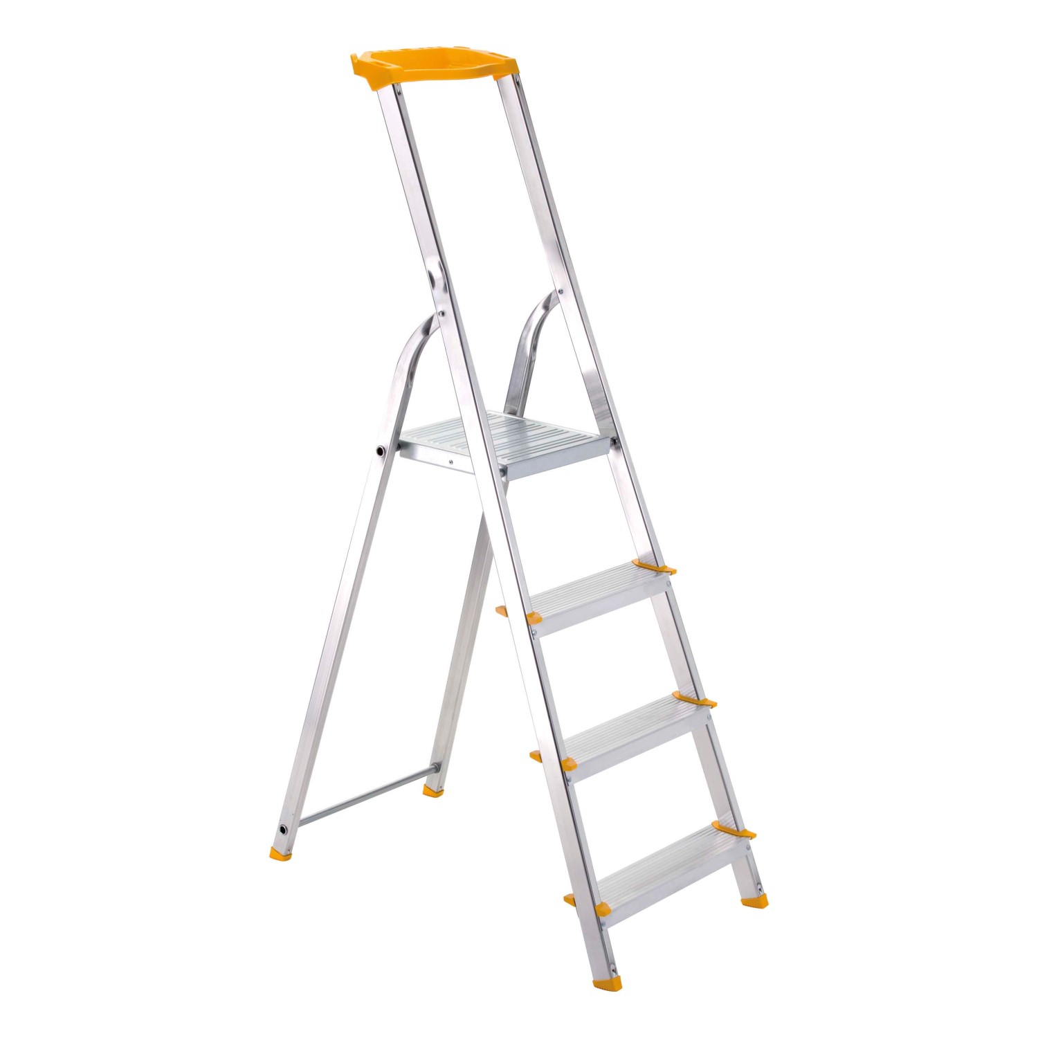 Domácí hliníkové schůdky mají 3 nášlapy a podlážku s poličkou. Schůdky měří na výšku 152 cm a jsou široké 43,1 cm.