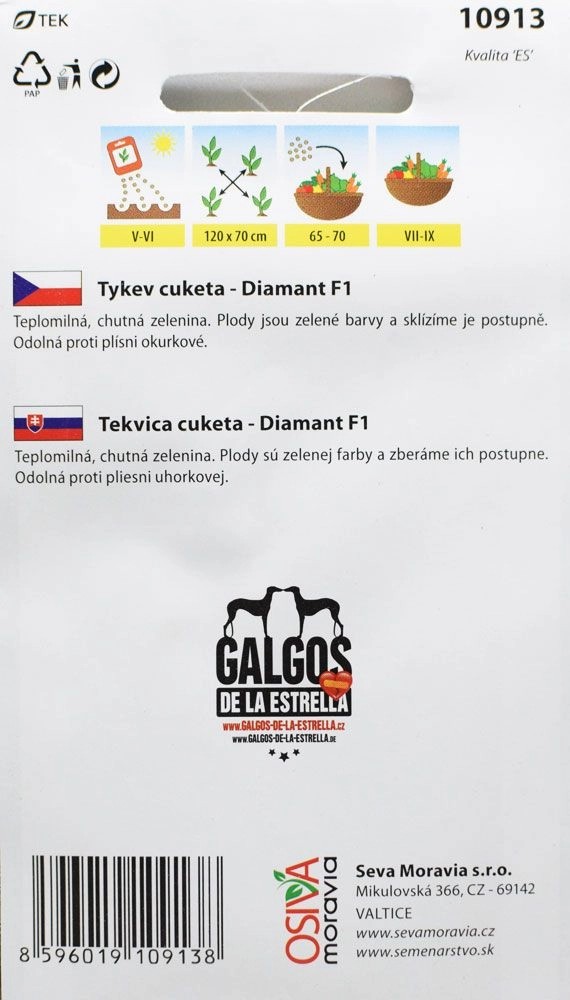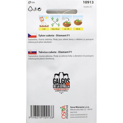 Teplomilná chutná zelenina. Plody jsou zelené barvy a sklízíme je postupně. Odolná proti plísni okurkové.