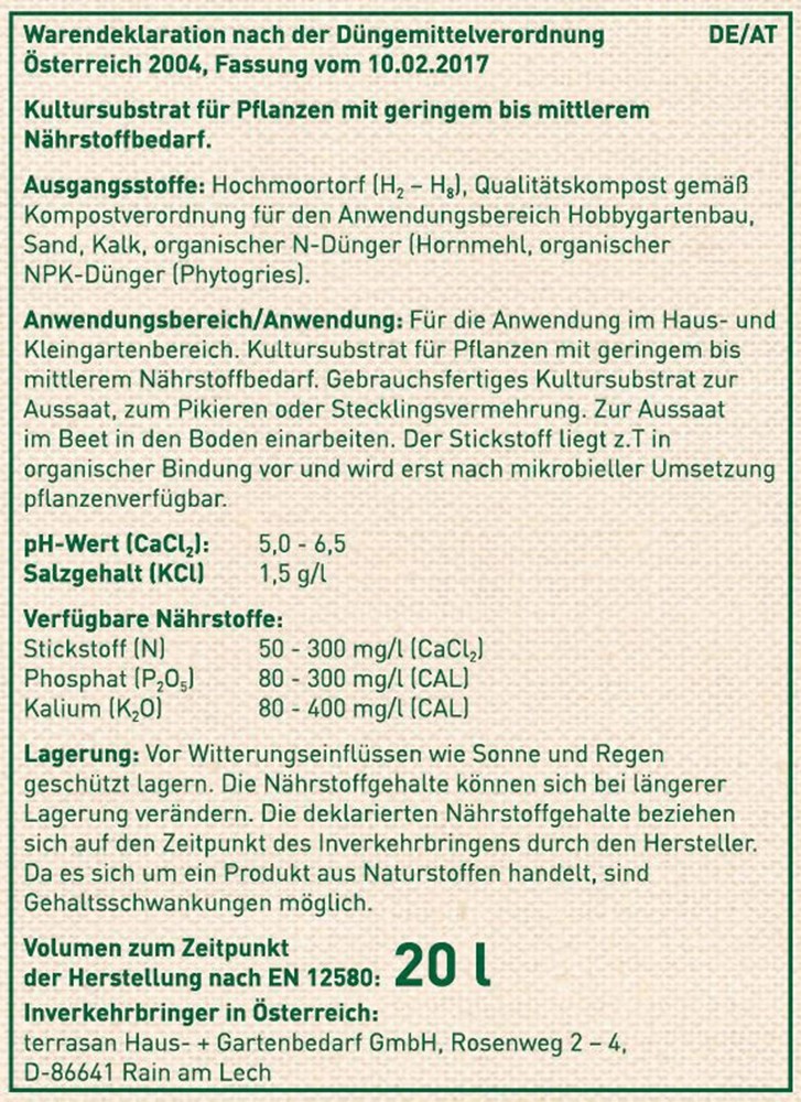 Tento speciální substrát se sníženým obsahem rašeliny je již vyhnojen k okamžitému použití a vytváří tak optimální růstové podmínky pro úspěšné pěstování mladých rostlin. Obohacení o rohovou moučku, vápno a kvalitní kompost přispívá k optimálnímu zásobování živinami, čímž zajišťuje zdravý růst rostlin a intenzivní aroma u bylinek.