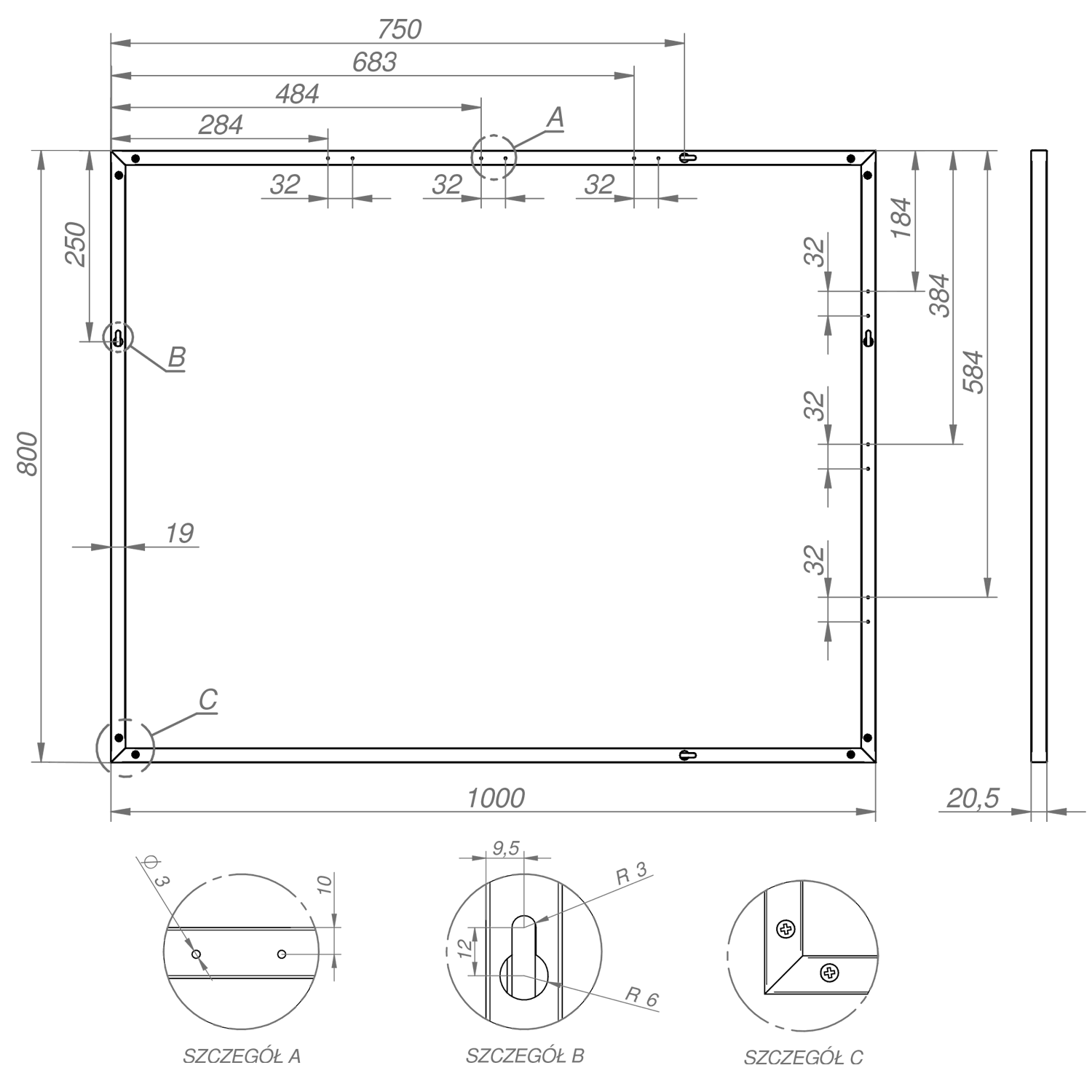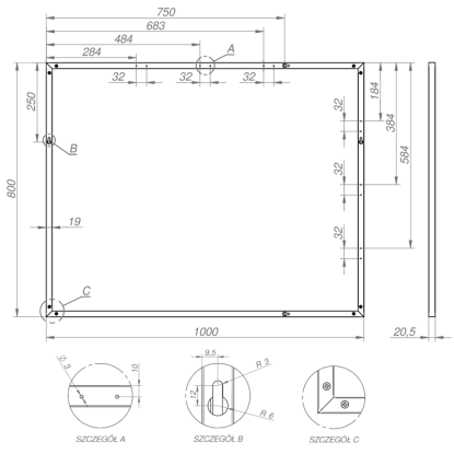 Moderní zrcadlo skvěle doplní každý interiér. Zrcadlo je zasazené v kovovém rámu tloušťky 19mm v barvě černá matná. Zrcadlo nejlépe zapadne do moderně zařízených koupelen se sprchami, bateriemi, umyvadly nebo nábytkem v černé barvě.