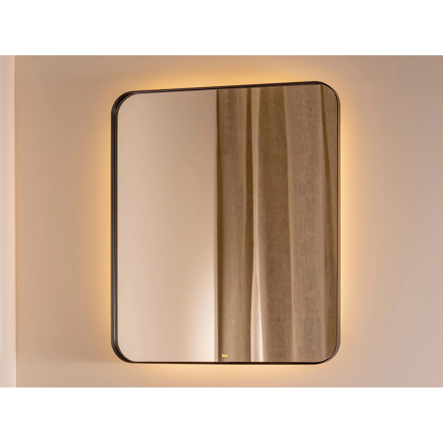Roca Zrcadlo Luna s LED osvětlením, černý rám, 80 x 80 cm